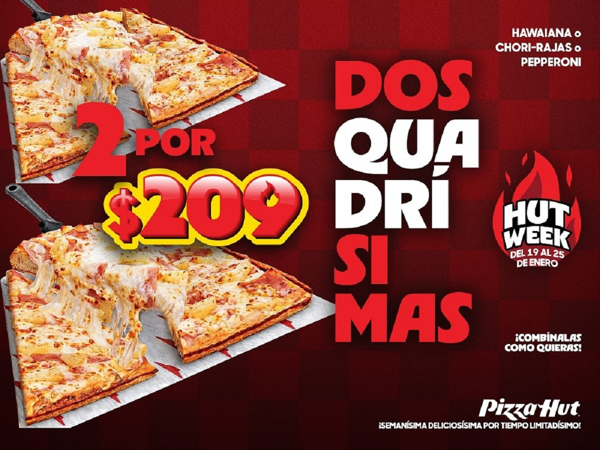 Elige entre tus Quadrísimas favoritas en esta HUT WEEK a un súper precio ¡2 pizzas Quadrísimas por $209!