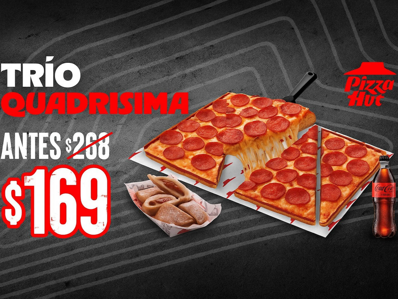 Solo Pizza Hut pudo mezclar 6 tipos de carnes: carne de puerco, carne de res, jamón, pepperoni, tocino y salchicha italiana, para los verdaderos amantes de la carne.