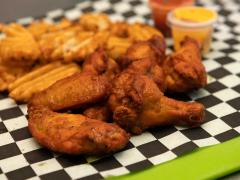 6 Alitas y 100 gr. de papas gajo.
