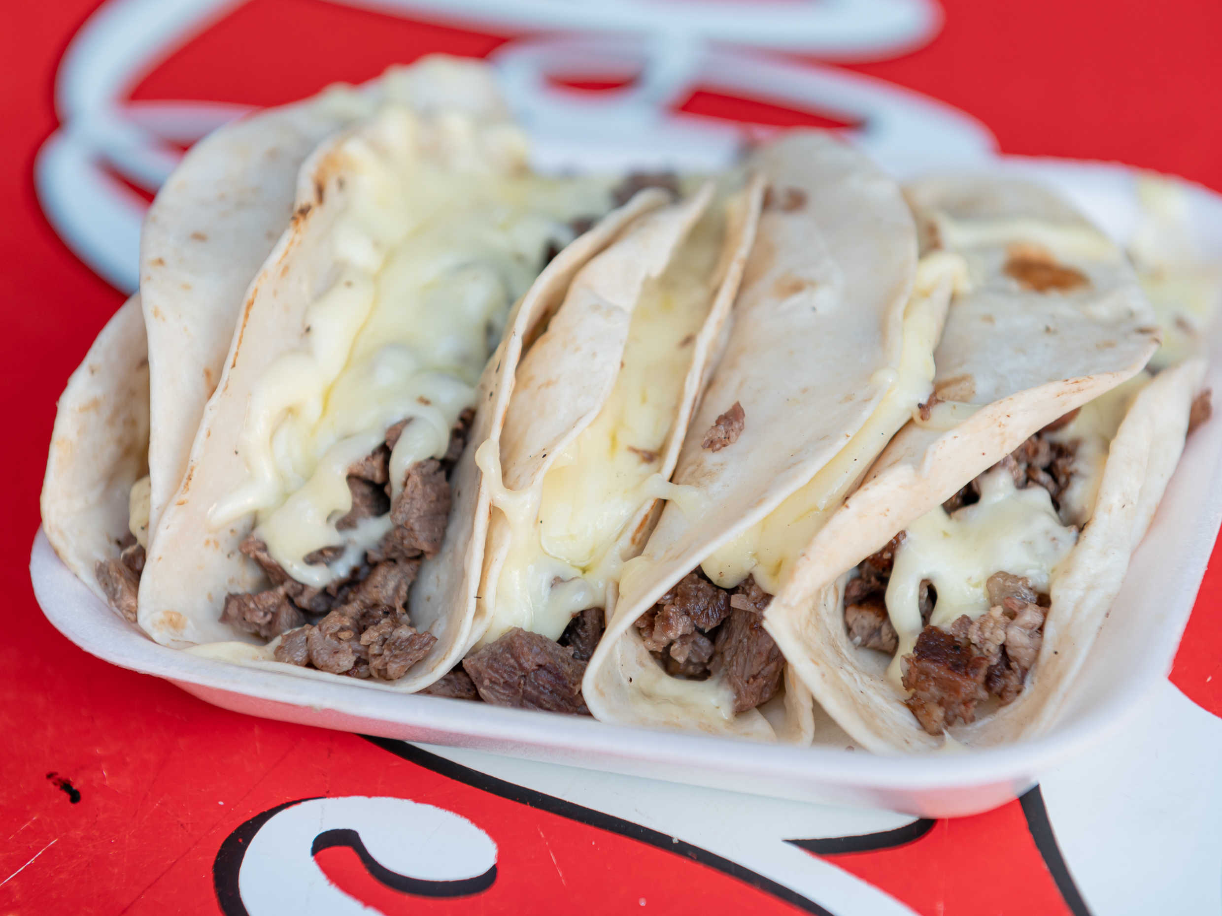 Orden de 5 tacos con queso gratinado en harina o maíz.