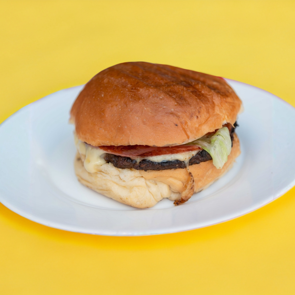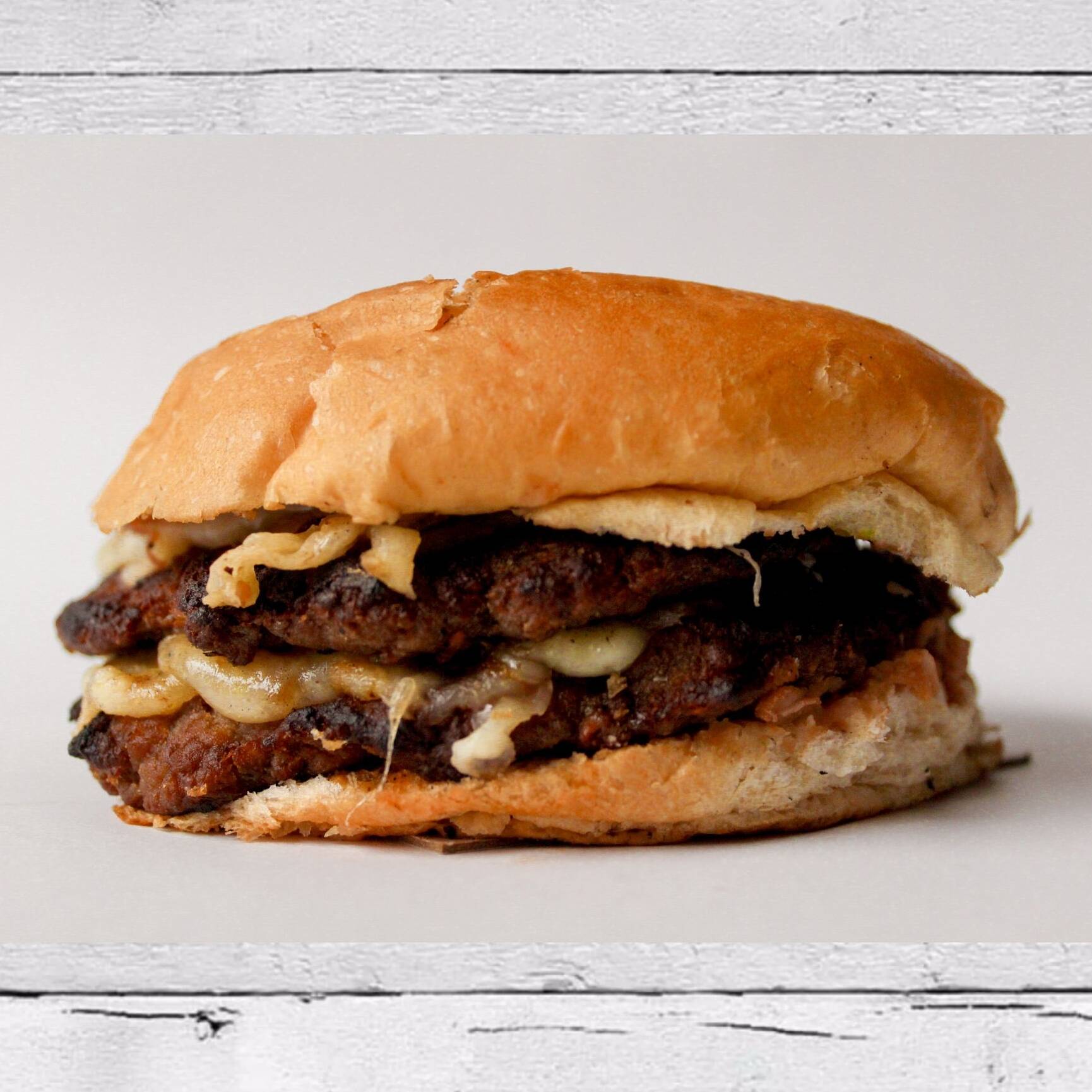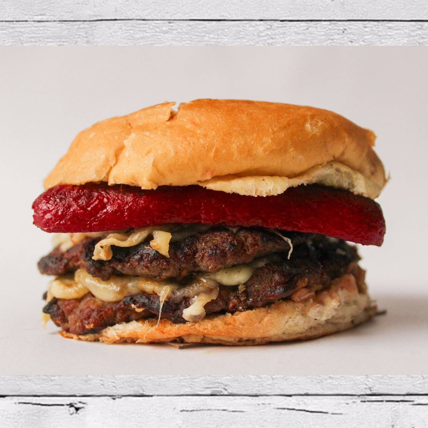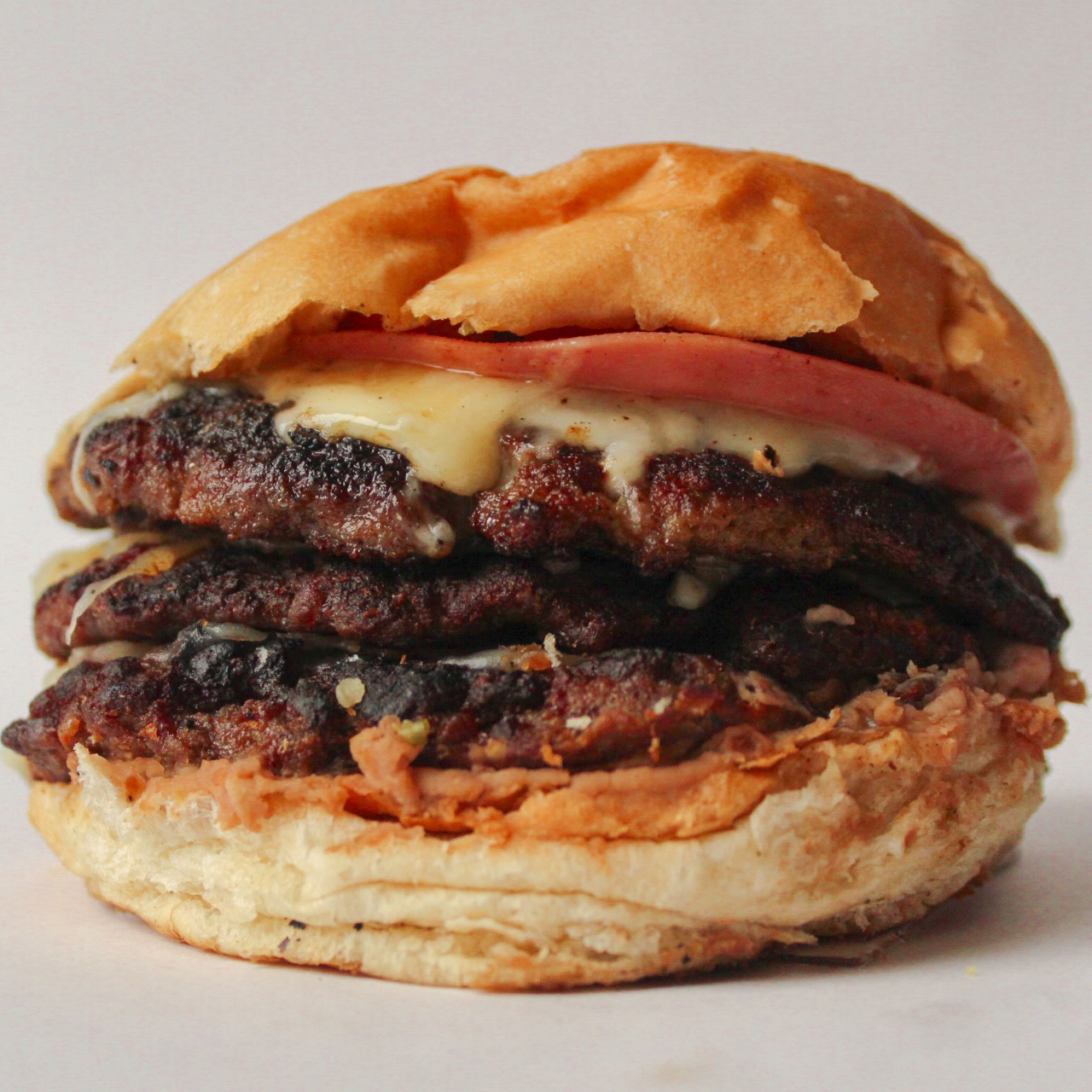 Doble carne doble, jamón, aguacate, tomate, cebolla, lechuga, mayonesa, mostaza y cátsup.