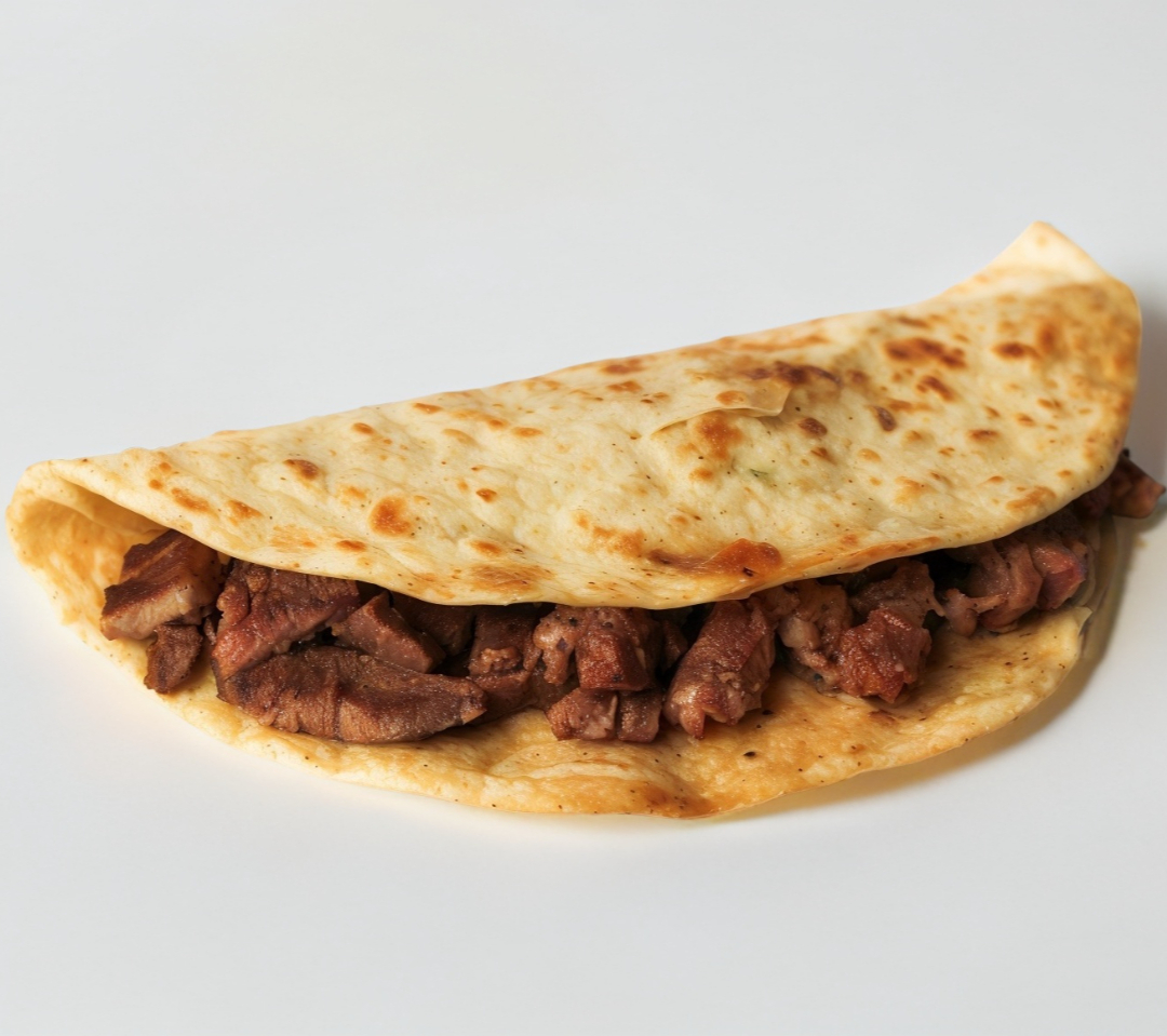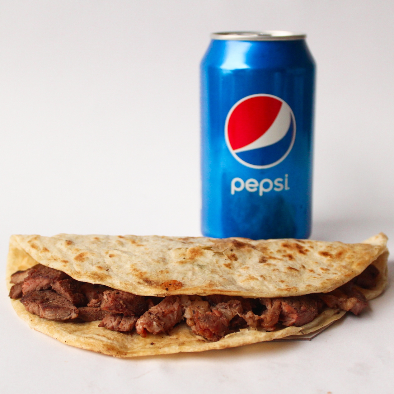 Delicioso pirata de queso con carne, incluye salsas y cebolla.