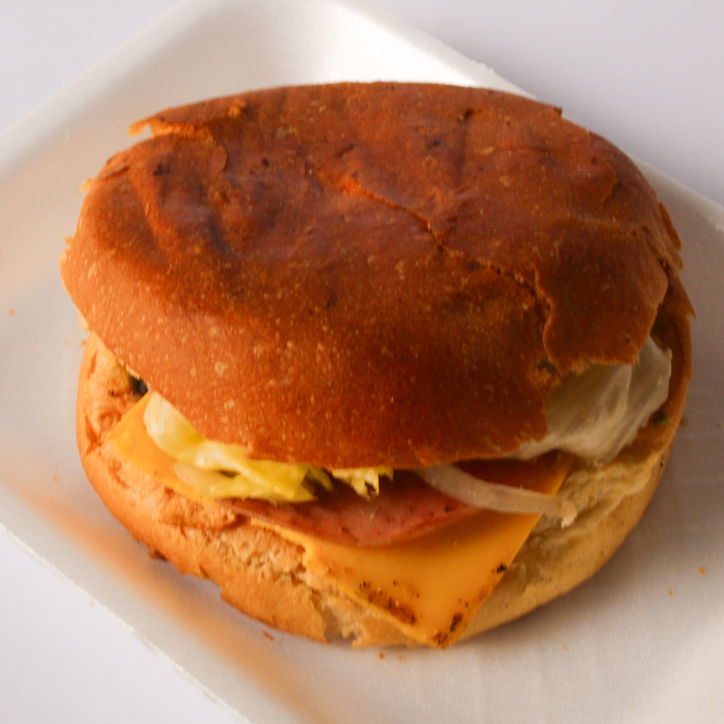 Jamón, queso amarillo, aguacate, tomate, cebolla, lechuga, mayonesa y cátsup.