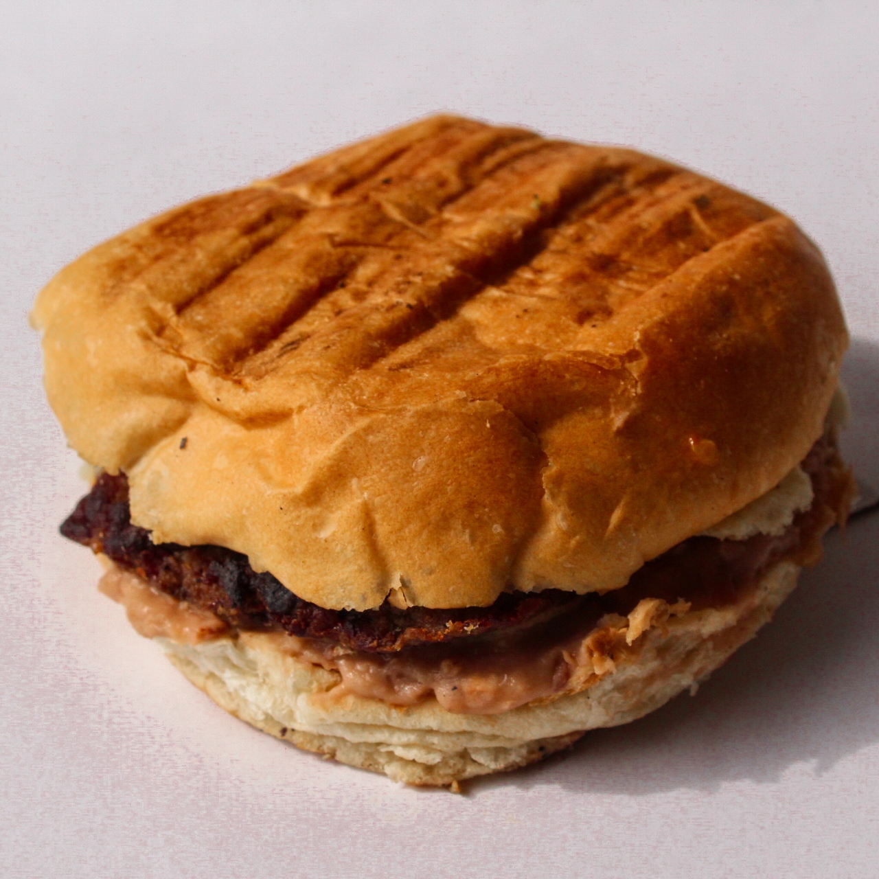 Carne 100% de res casera, frijoles refritos, jamón, queso blanco, aguacate, tomate, cebolla, lechuga, mostaza, mayonesa y cátsup.
