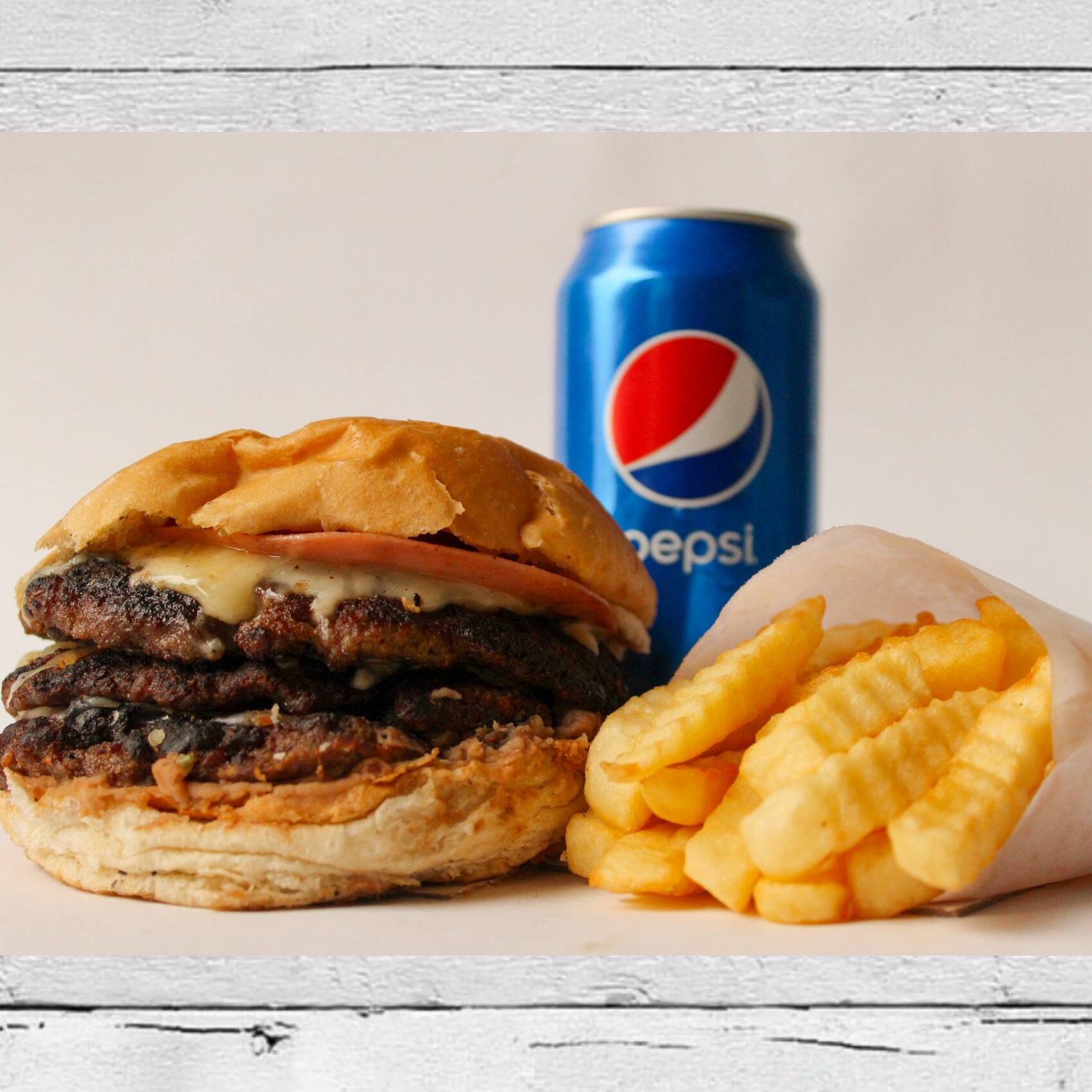 Hamburguesa Triple*1 + Papas a la Francesa Orden Chica*1 + Refresco de Lata*1