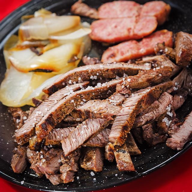 500 gramos de jugosa carne Arrachera Marinada acompañada de tortillas, totopos, cebolla asada y salsas.