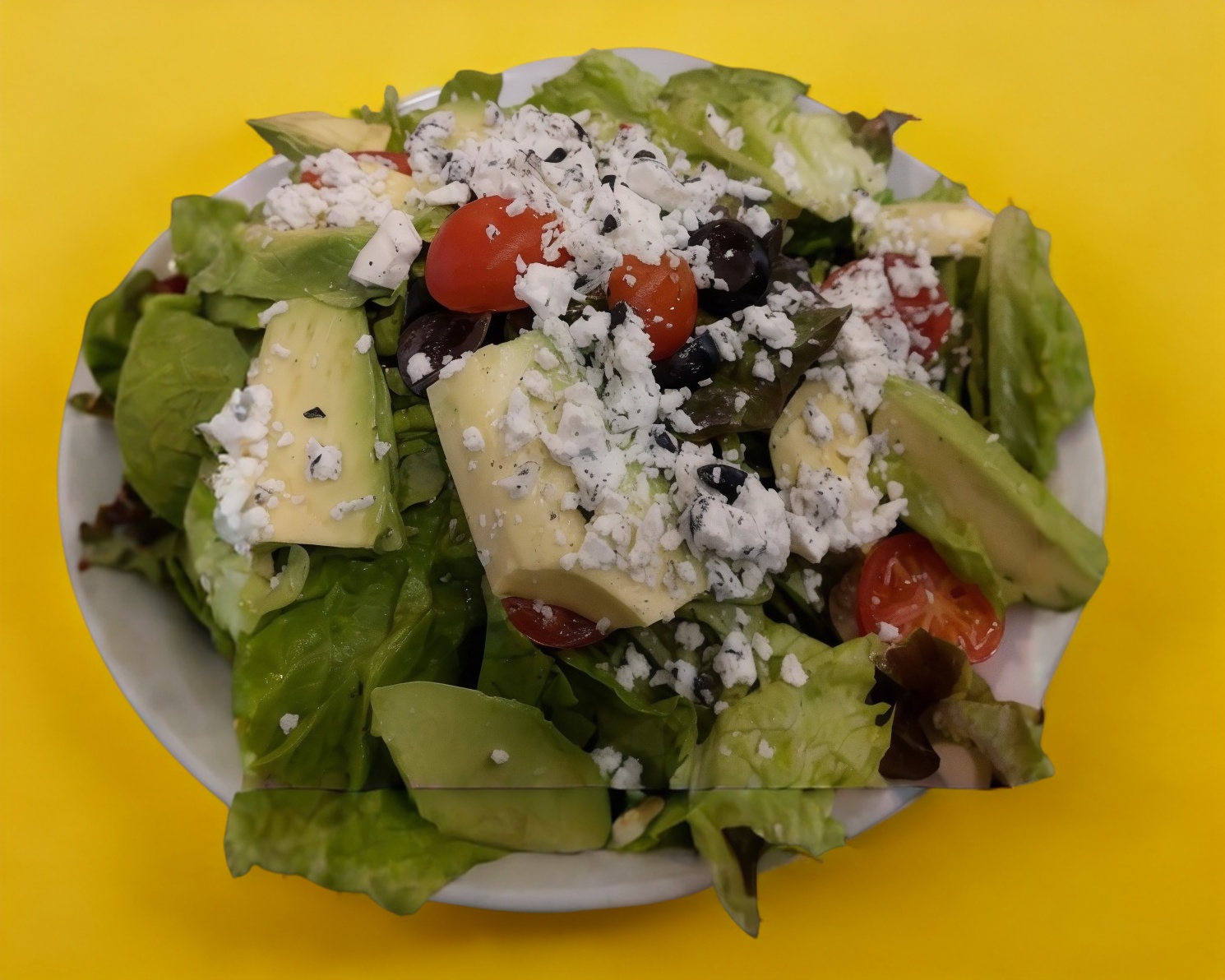 Base de lechuga morada Con Lechuga Italiana , Aceituna ,Queso De Cabra , Tomatillo Cherry , Aguacate , Acompañado De 3 Muslitos Agregandole Tu Salsa Favorito