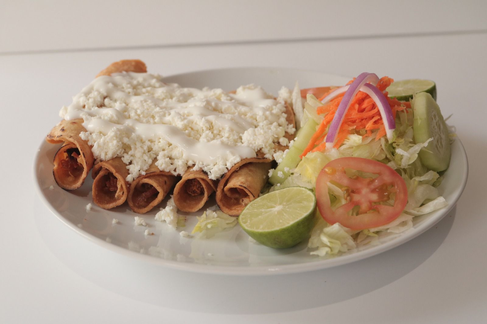INCLUYE 5 FLAUTAS DE POLLO Y ENSALADA DE LECHUGA.