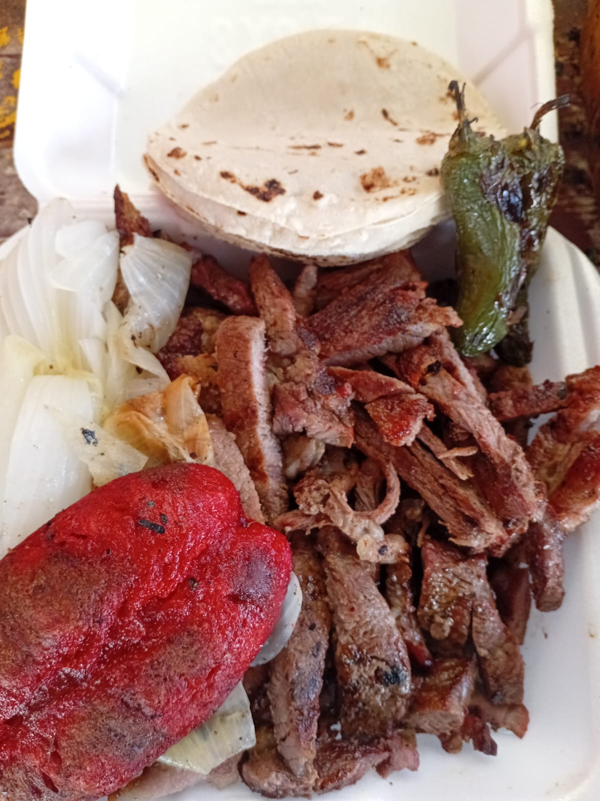 Incluye: salchicha, cebolla, chile toreado, salsa verde y roja, tortillas.