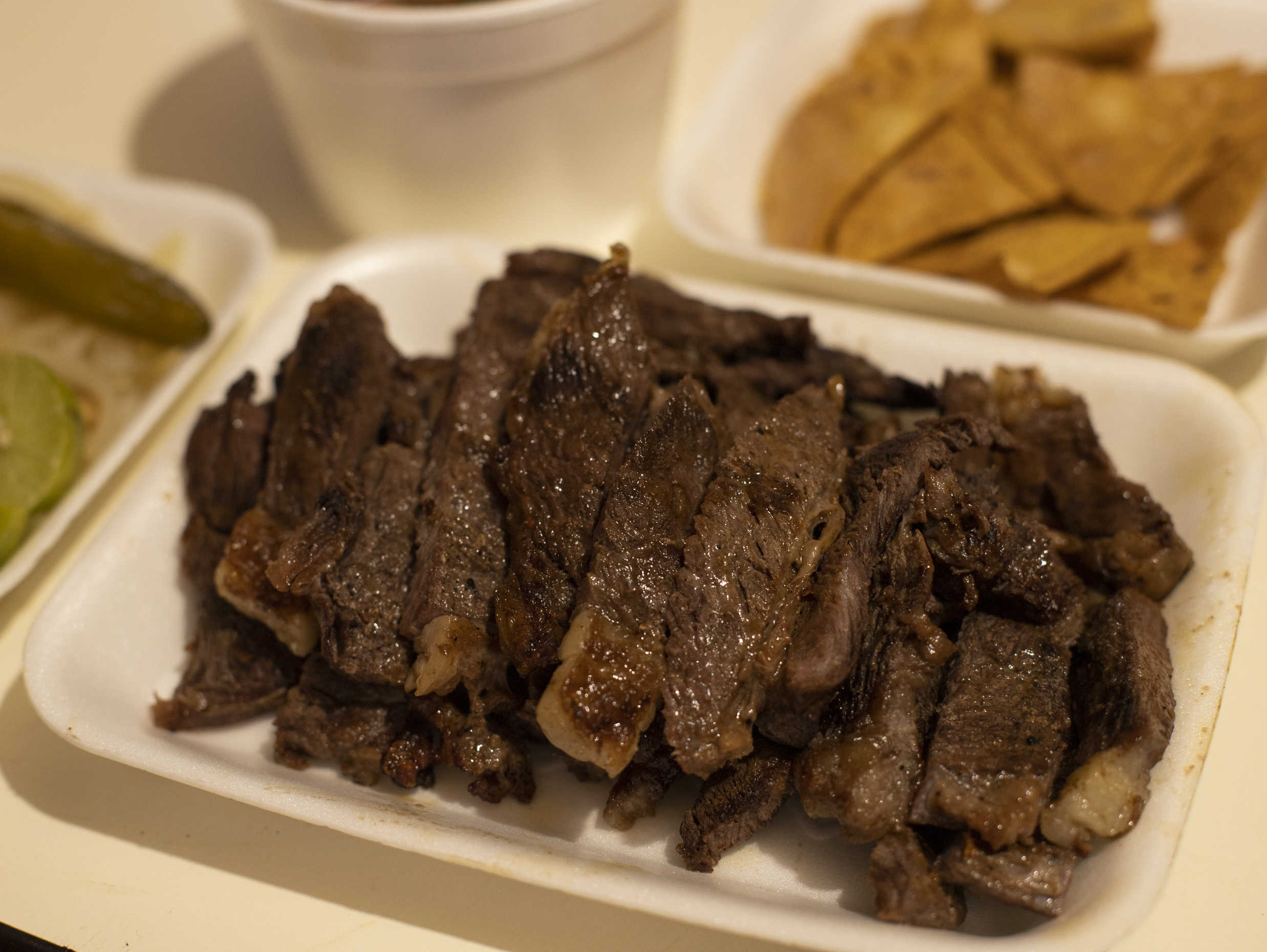 Incluye cebolla asada, chiles toreados, limón, salsa verde y roja, salsa de aguacate, tortillas, totopos y 1/2 litro de frijoles