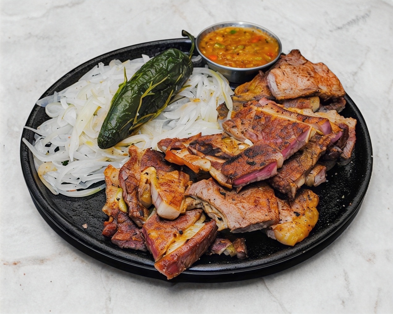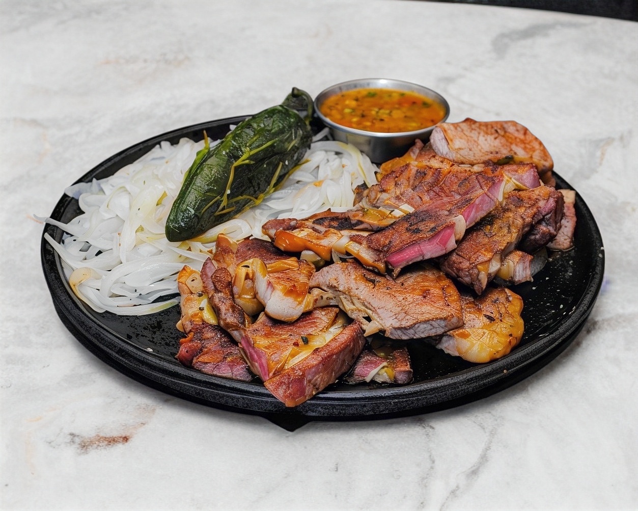 Carne de res o de pollo, queso Oaxaca, chile chiloa, chorizo, cebolla, guacamoles y mayo habanero