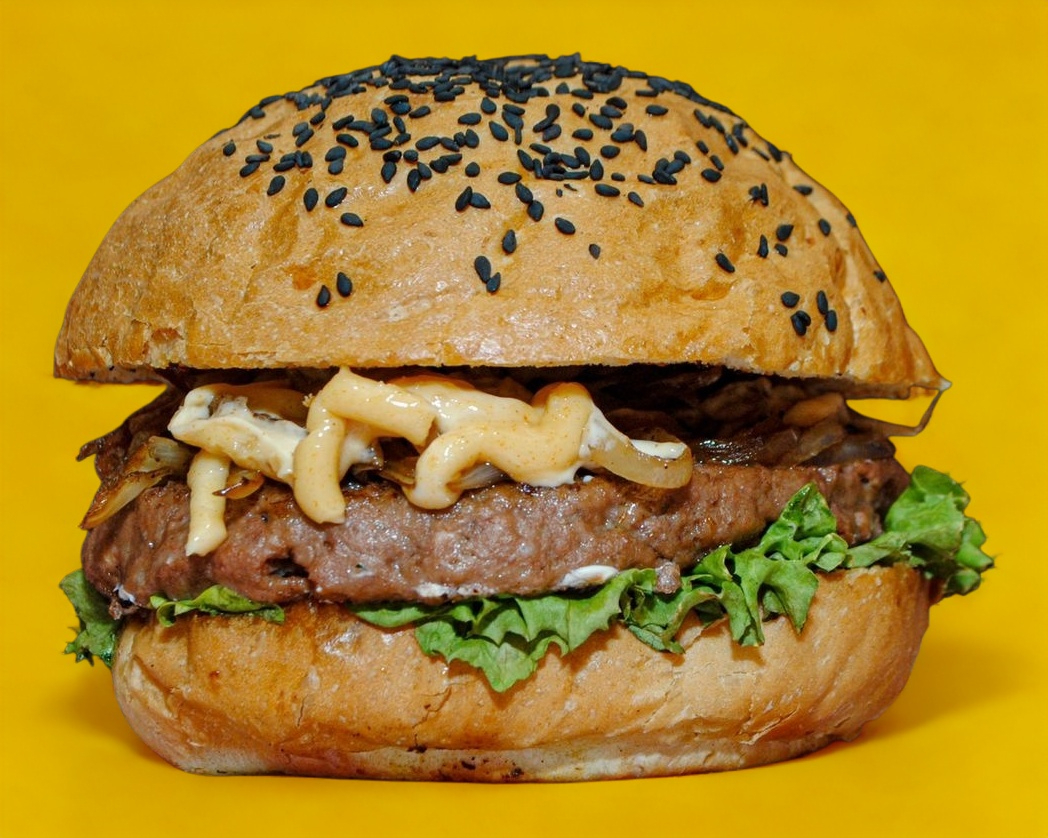 Carne sirloin, queso monterrey, champiñones, lechuga, cebolla crujiente y mayo-chipotle.
