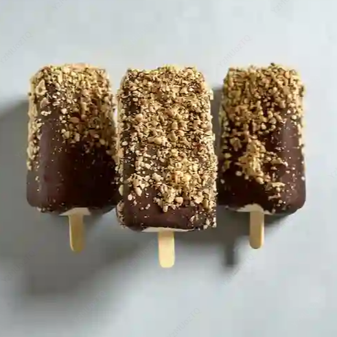 Paleta esquimal tradicional con cobertura de chocolate y nuez.