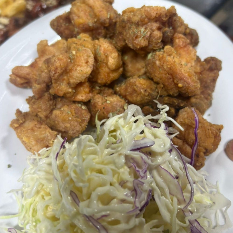 600 Gr de pollo frito coreano, ensalada, nabo y chile toreado. (2 Salsas de su elección)