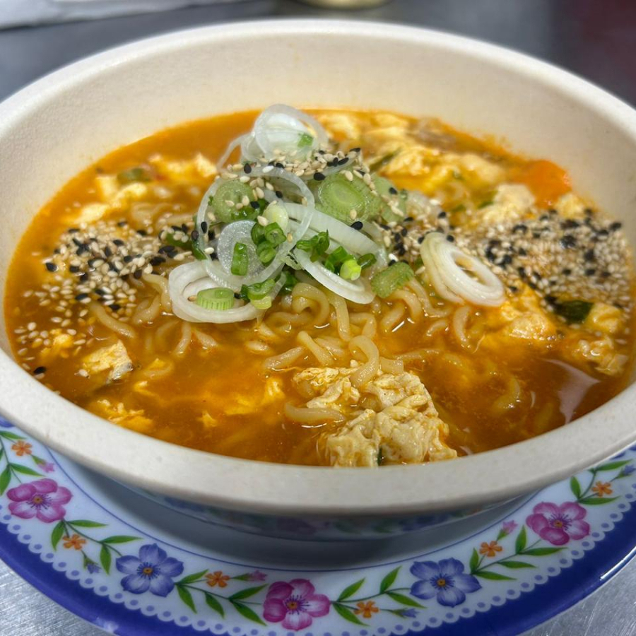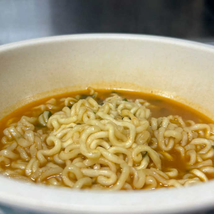 Delicioso ramen coreano picante con fideos gruesos, con caldo concentrado y condimentado. (Con o sin huevo, con o sin cebollín y cebolla)