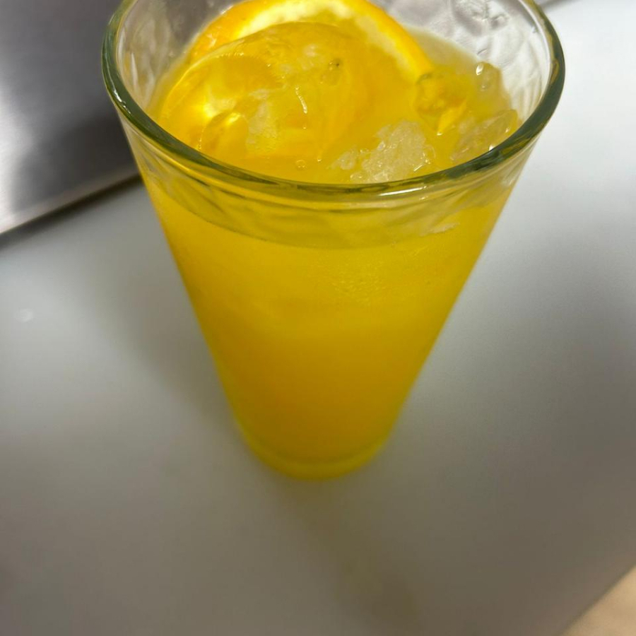 Bebida refrescante de naranja, gaseosa y con rodaja de naranja!