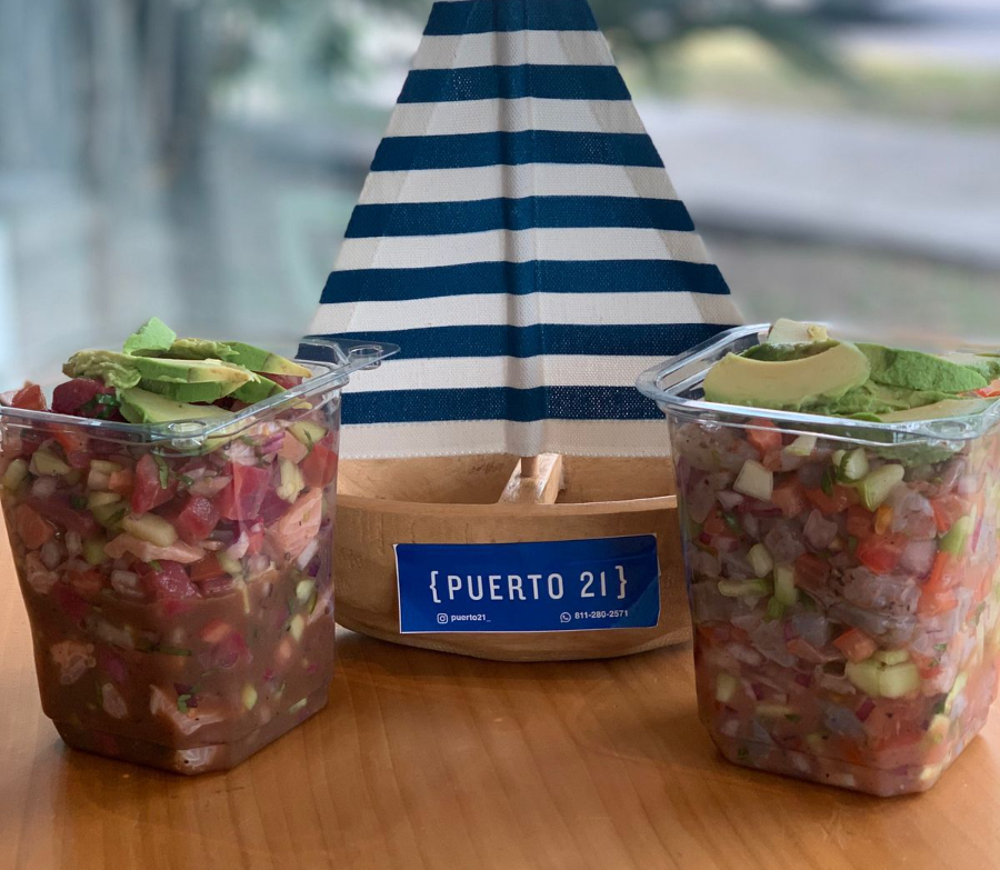 Camarón, clamato, pepino, cebolla, catsup, cilantro incluye galletas saladas