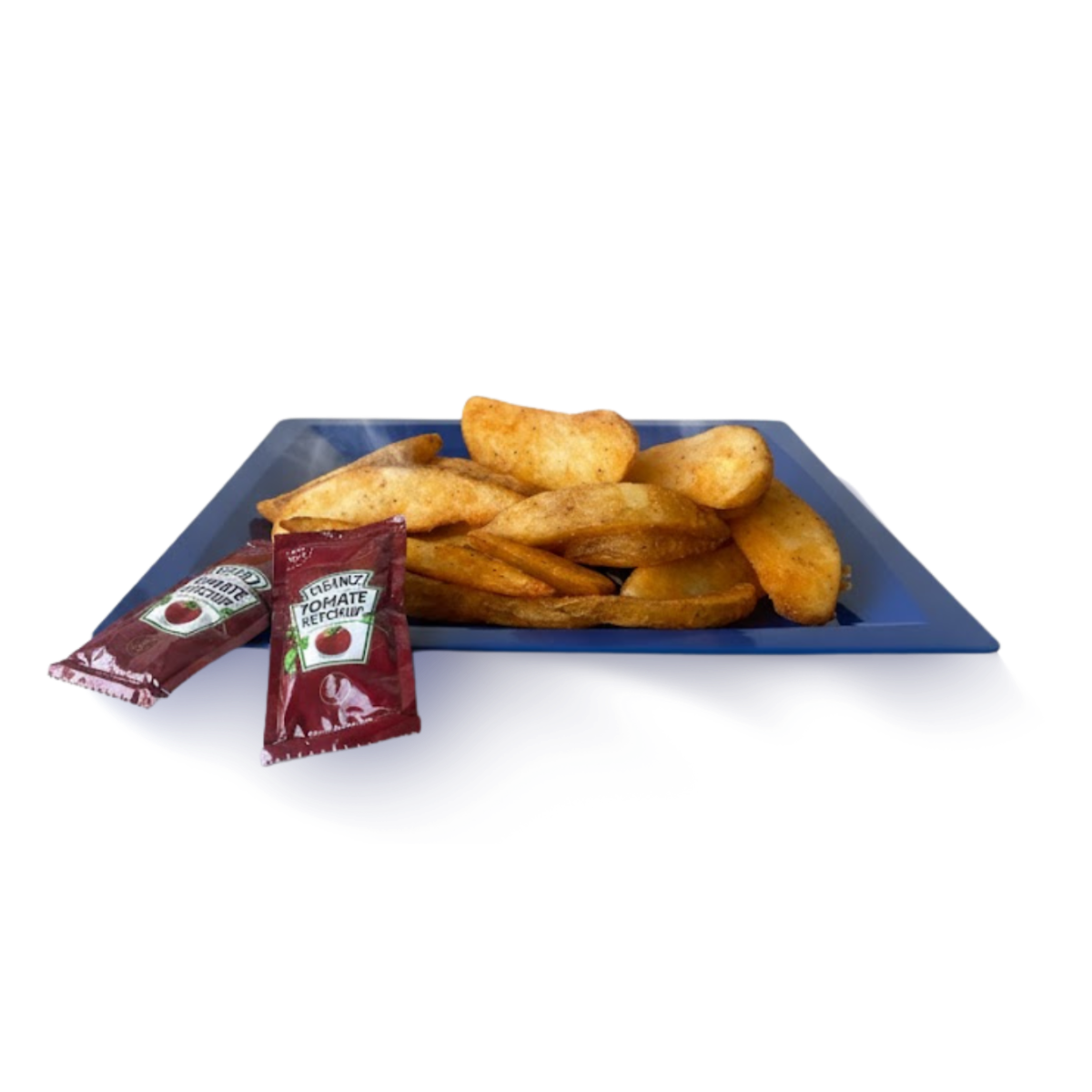 Ricas papas gajo sazonadas, acompañadas de un aderezo Ketchup