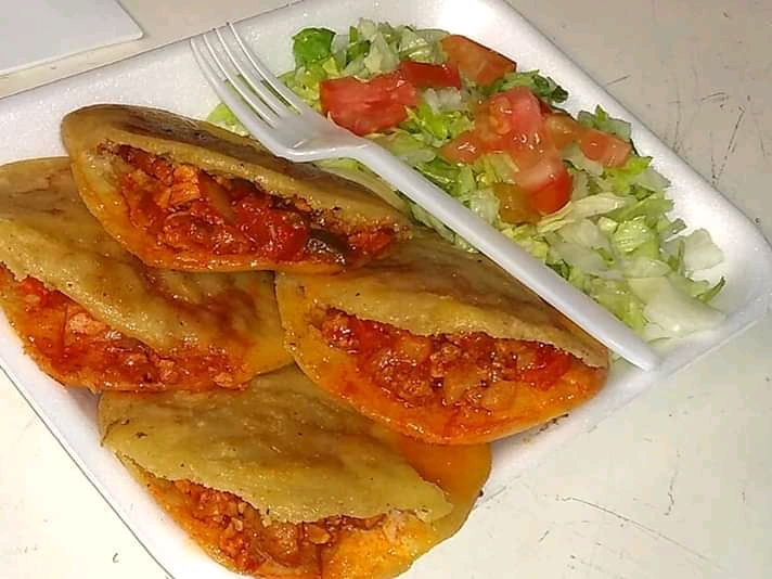 5 piezas va relleno de guisos, chicharrón, picadillo, deshebrada, asado, champiñones, acompañados con lechuga y tomate muy ricos 100% caseros