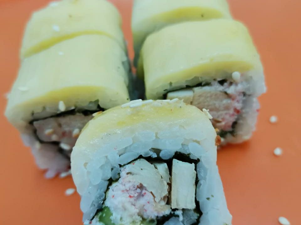 Tempura o panki capeado o empanizado, alga o arroz a fuera y queso crema a tu elección.
