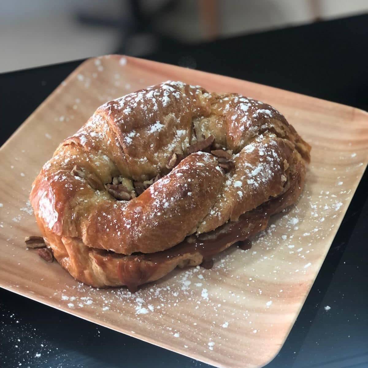Cuernito enmielado con cajeta y nuez