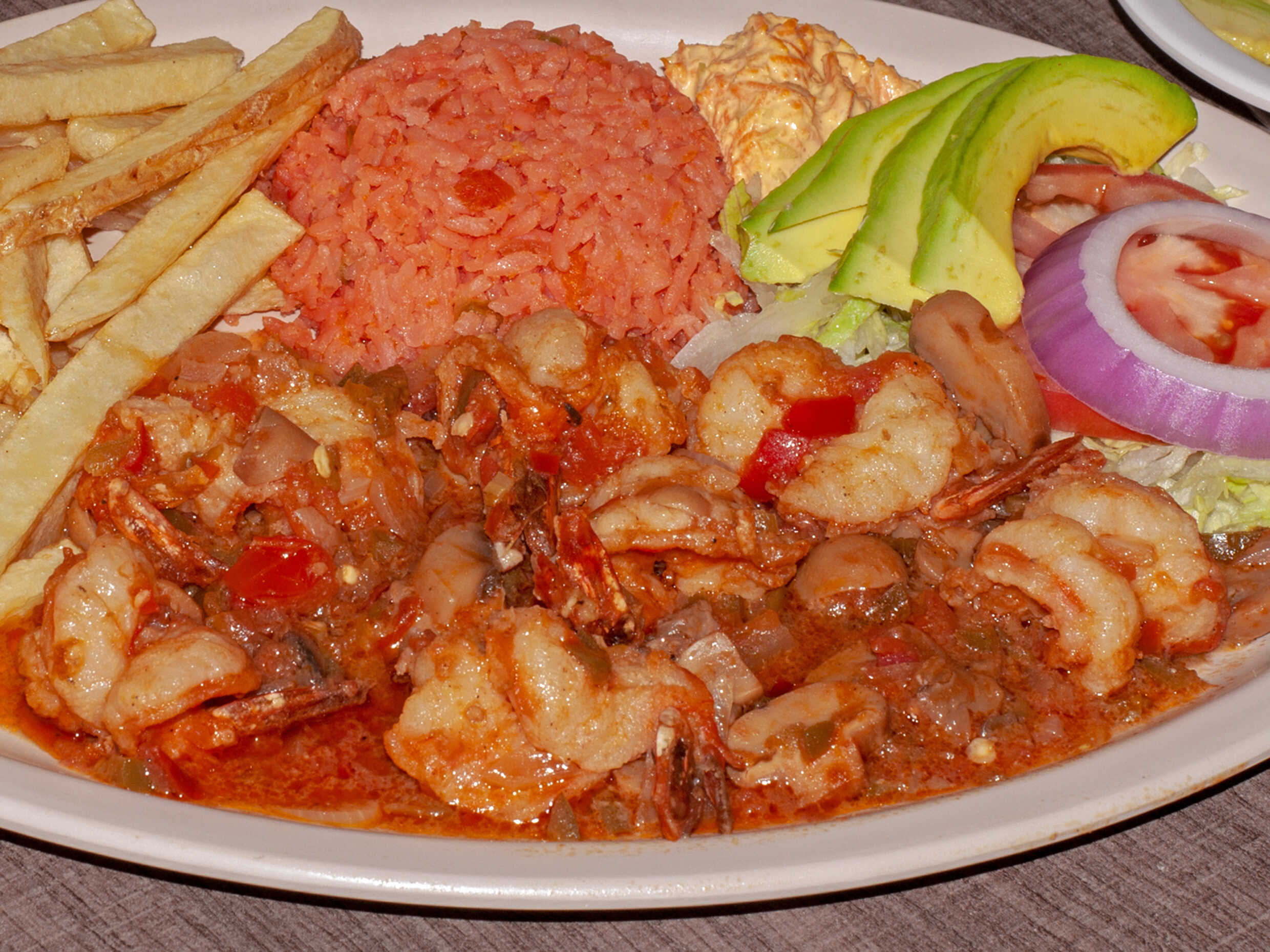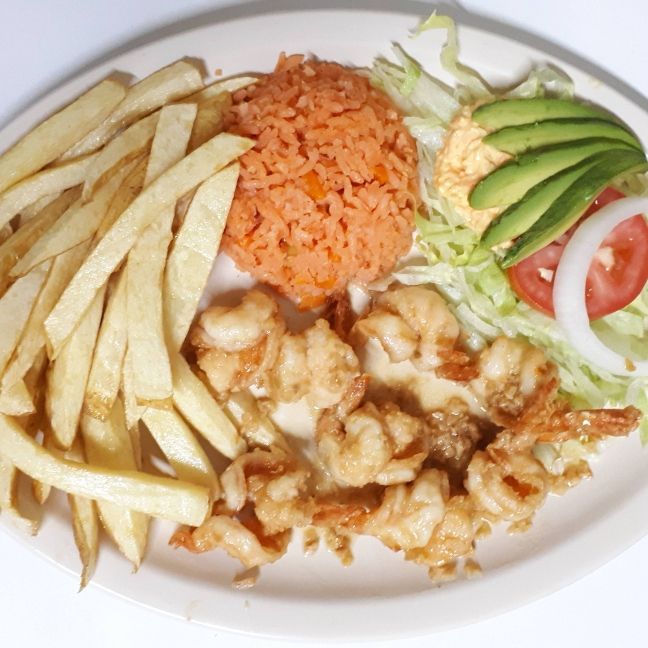 Orden con 7 🦐 guarnición arroz papas lechuga tomate cebolla aderezo Incluye galletas salsa habanera y limon