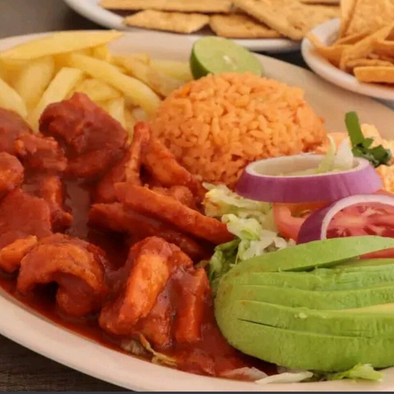 Guarnición, arroz papas aderezo lechuga tomate cebolla aguacate, Incluye galletas Totopos sobre de catsup sobre de habanero limón y dulce