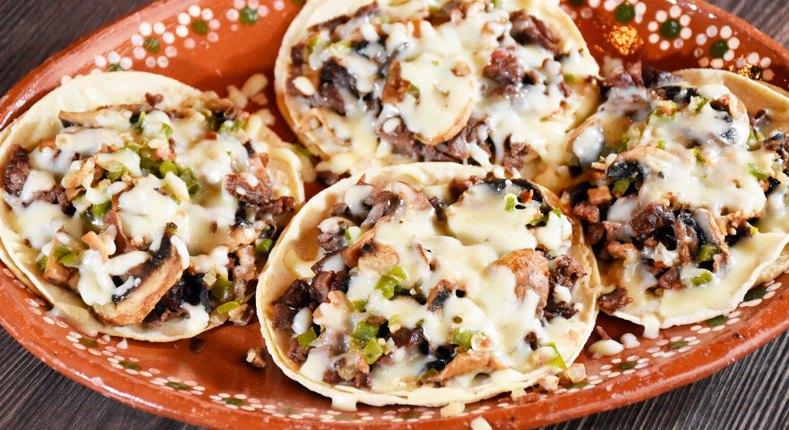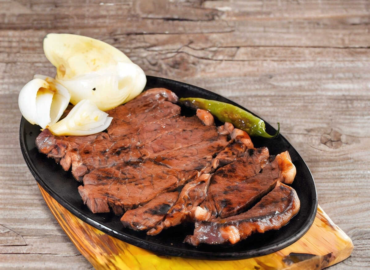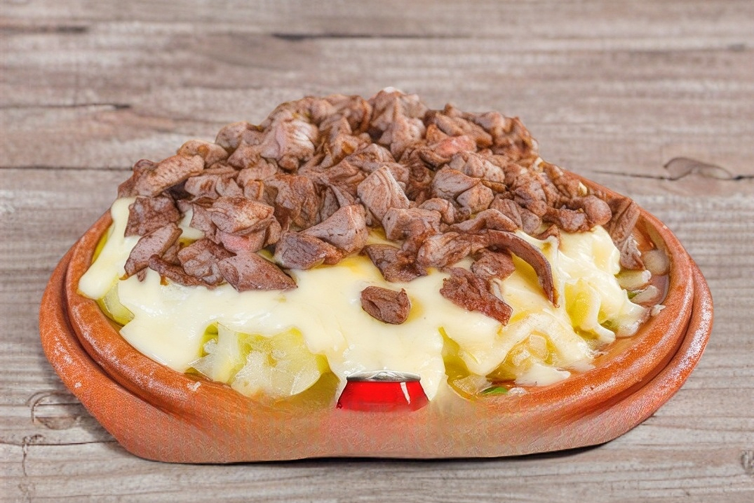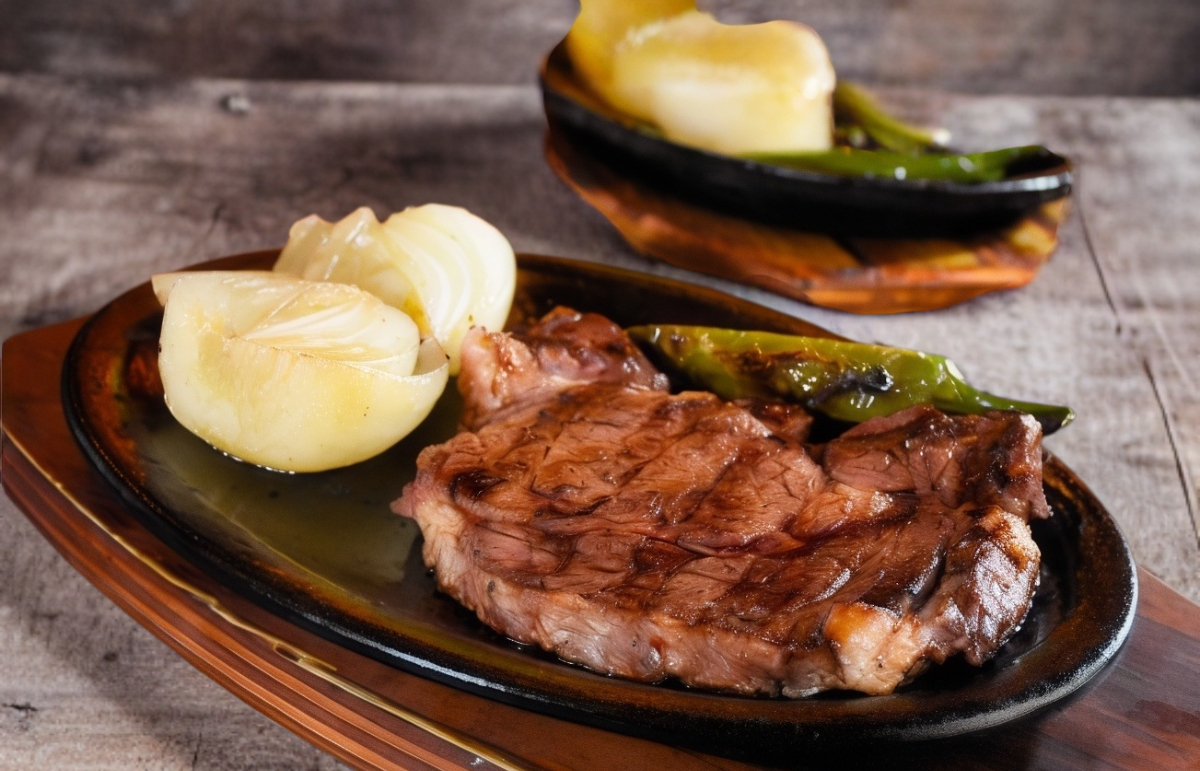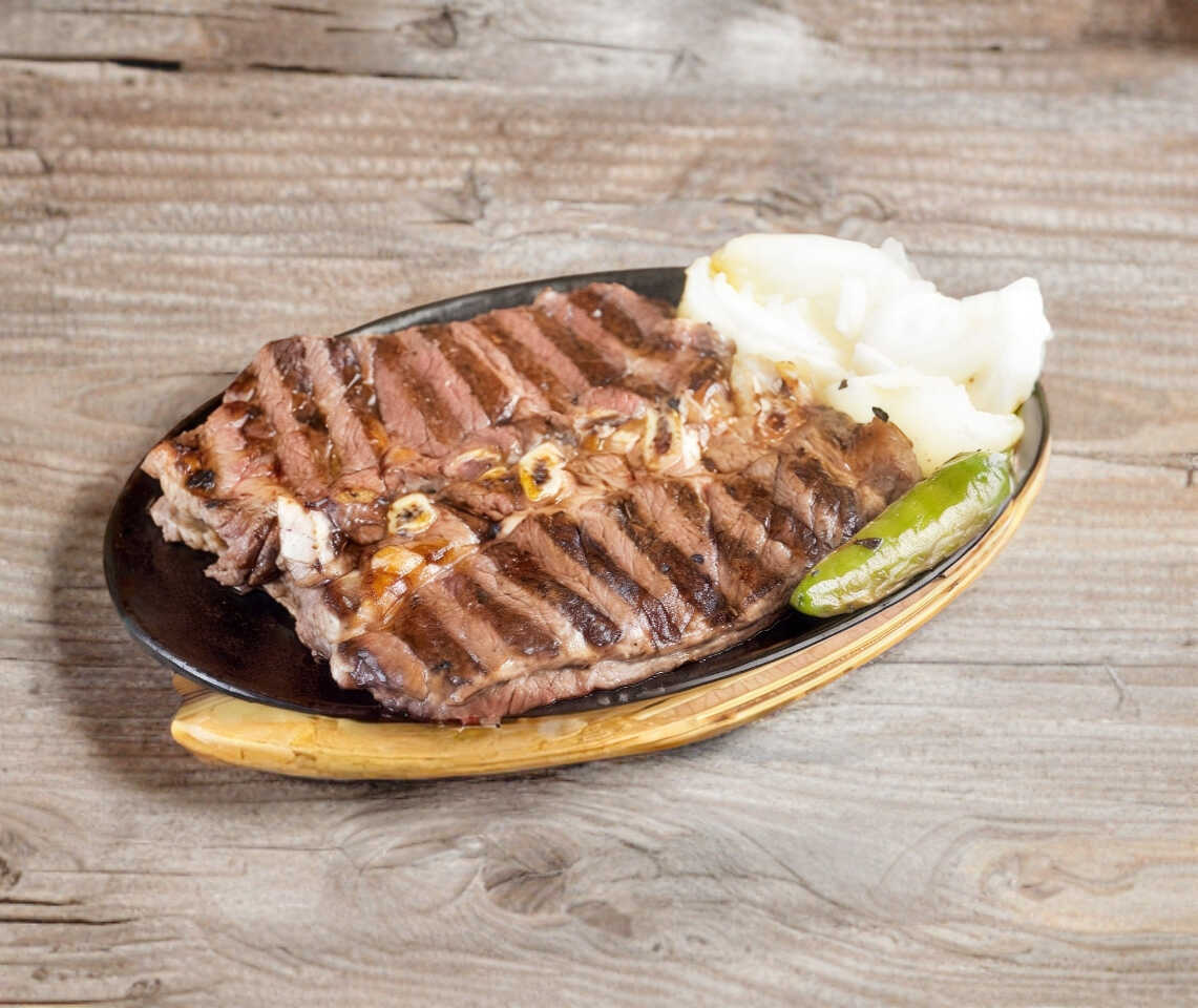Arrachera, champiñón, tocino, cebolla y morrón.