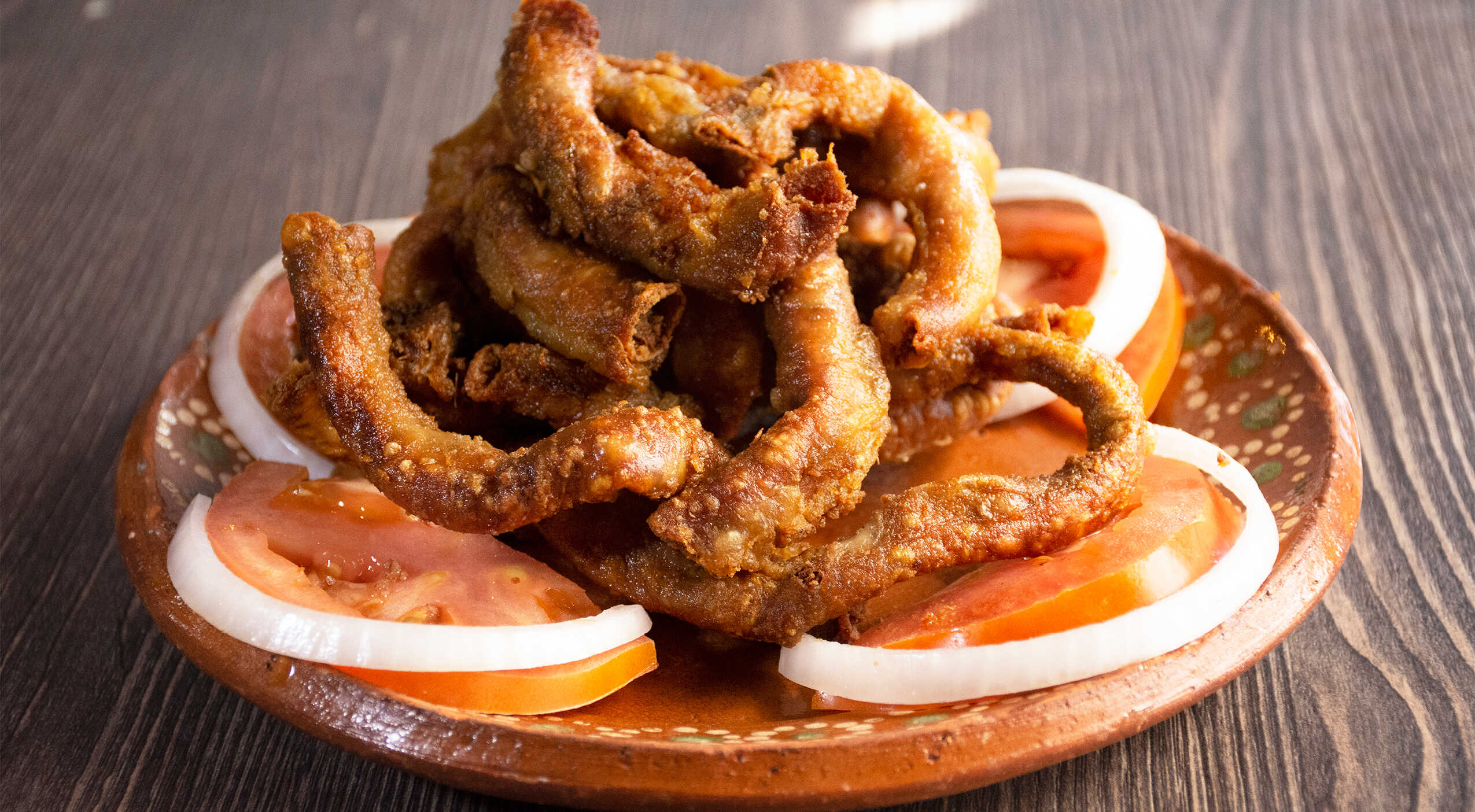 300gr Chicharrón sobre un guacamole al piquin.