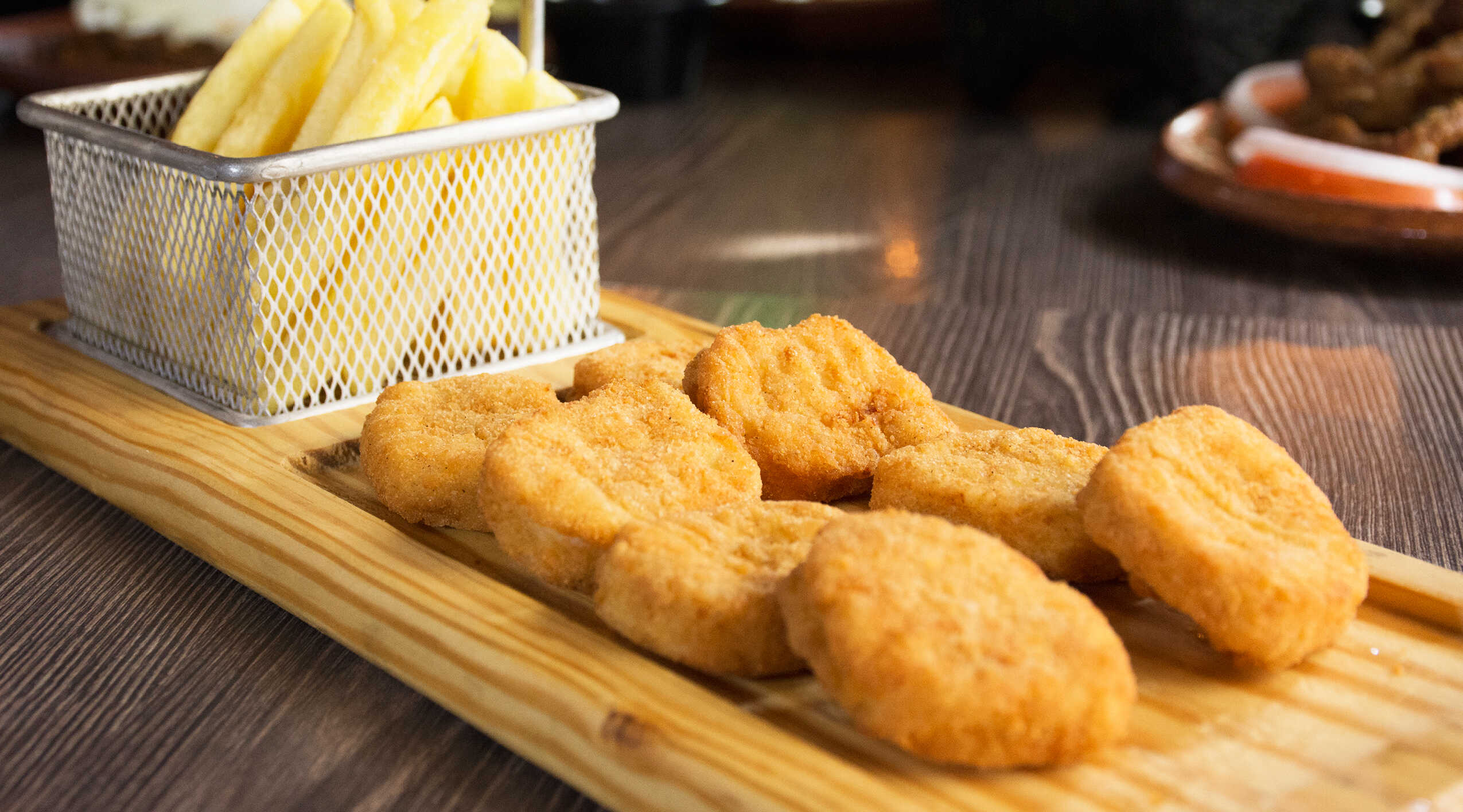Nuguets de pollo acompañado de papas a la francesa.