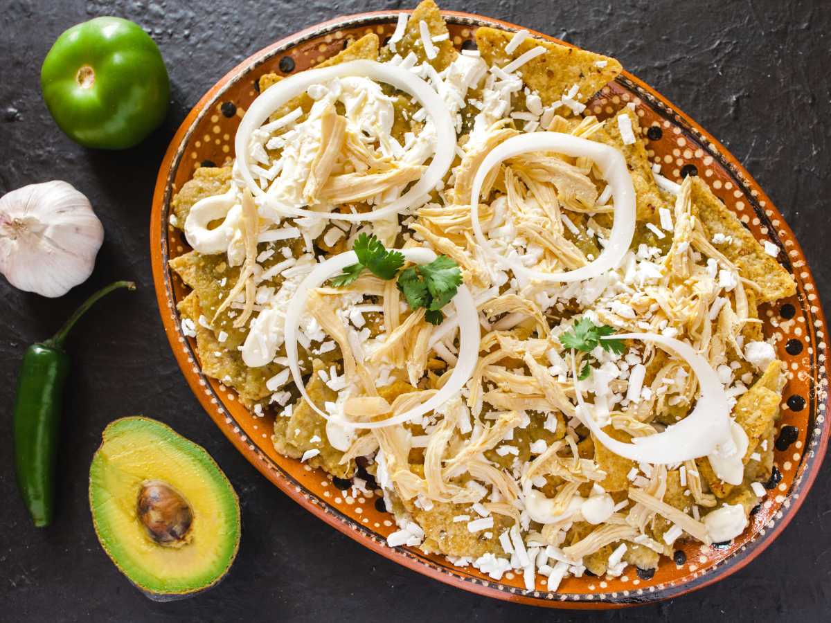 'CHILAQUILES ROJO CON POLLO Y AGUACATE
