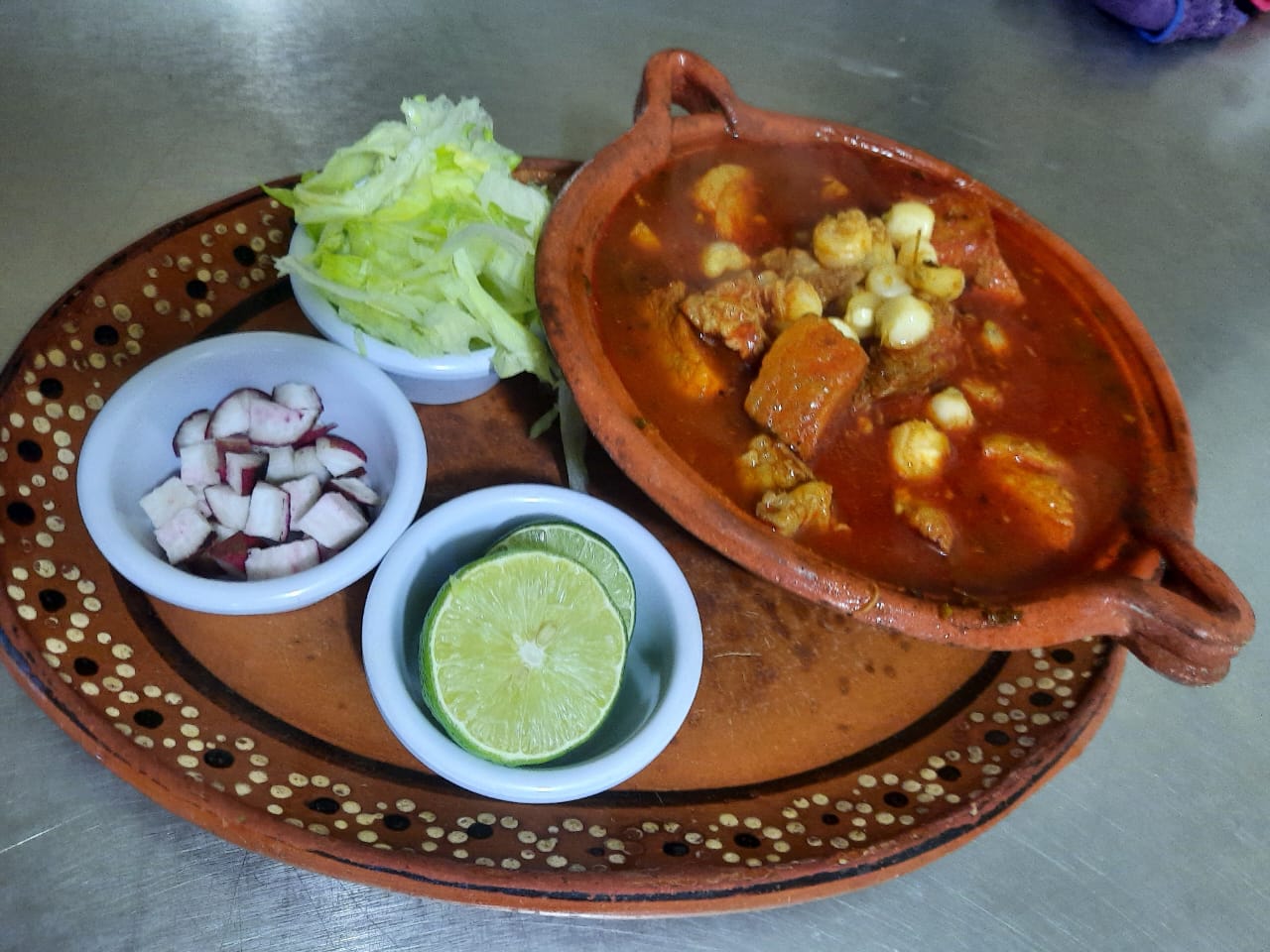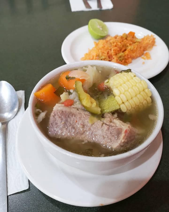 300 g T-bone, 300 g chuletón, 3 salchichas, cebolla dorada, chile toreado, limón, salsa y tortillas, 3 sopitas del día.