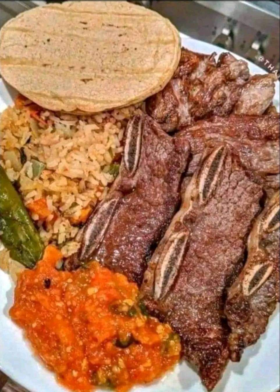 300 GRS de CARNÉ De RES AL MEXICAN ACOMPAÑAN DE ARROZ FRIJOLES TORTILLAS Y SALSA