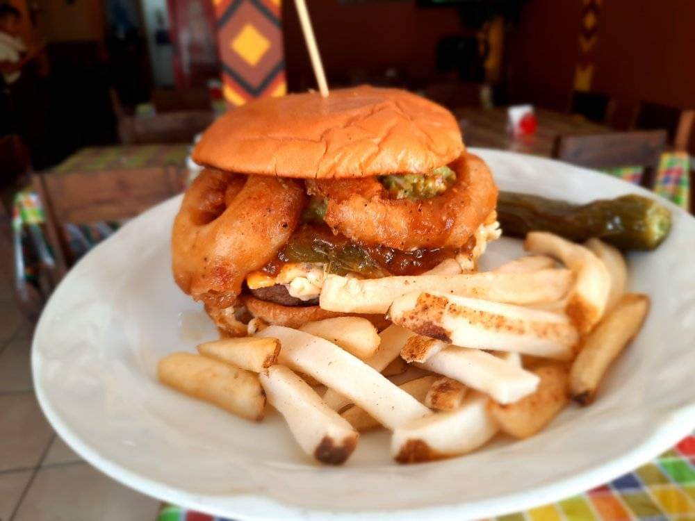 HAMBURGUESA ENDIABLADA Y PAPAS A LA FRANCESA
