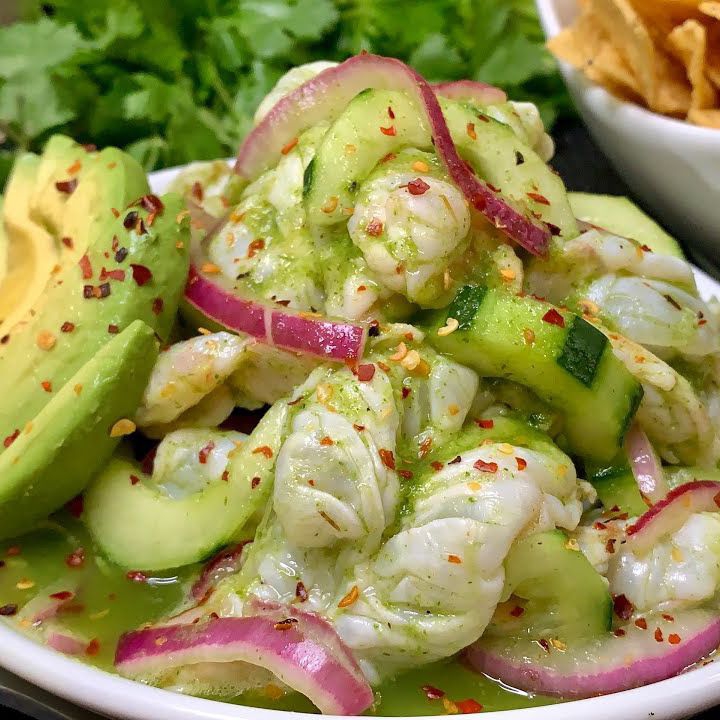 MEDIO LITRO DE AGUA CHILE VERDE CON PEPINO Y CEBOLLA MORADA CURTIDO DE LIMÓN CON TOTOPOS Y TOSTADAS Y AGUACATE