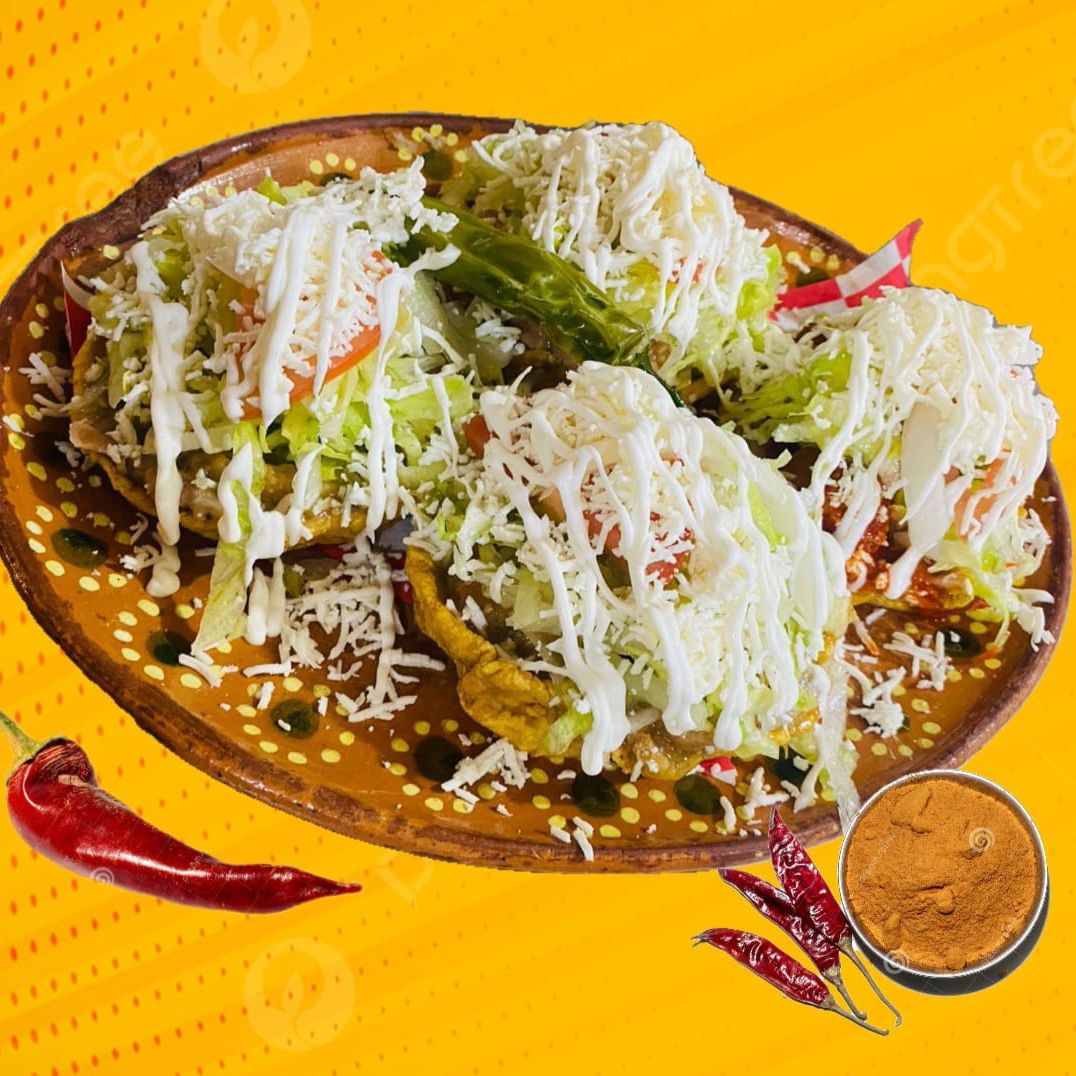 Se acompaña de frijoles refritos ensalada de lechugass cebolla dorada Chile torneado tortilla y limón