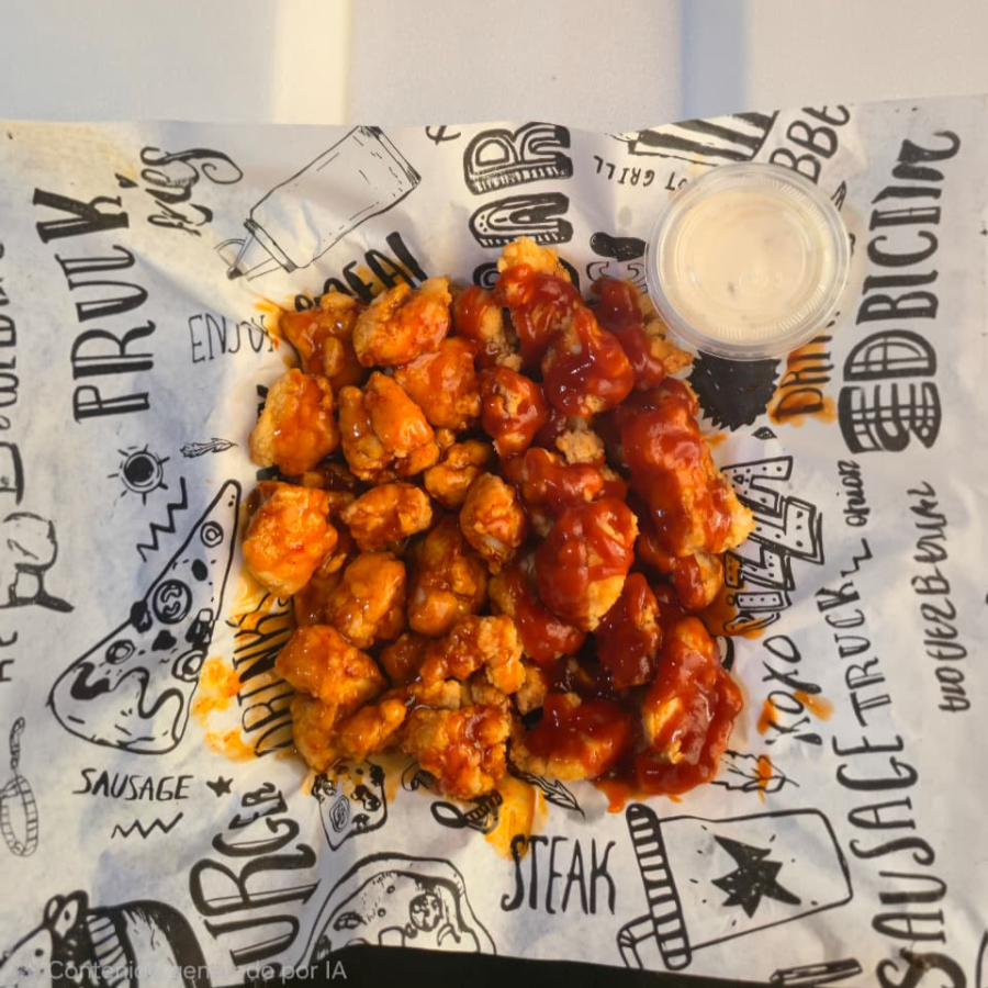 1 Hamburguesa personal clásica con boneless, tomate, cebolla, chile y bañados en salsa a elegir
