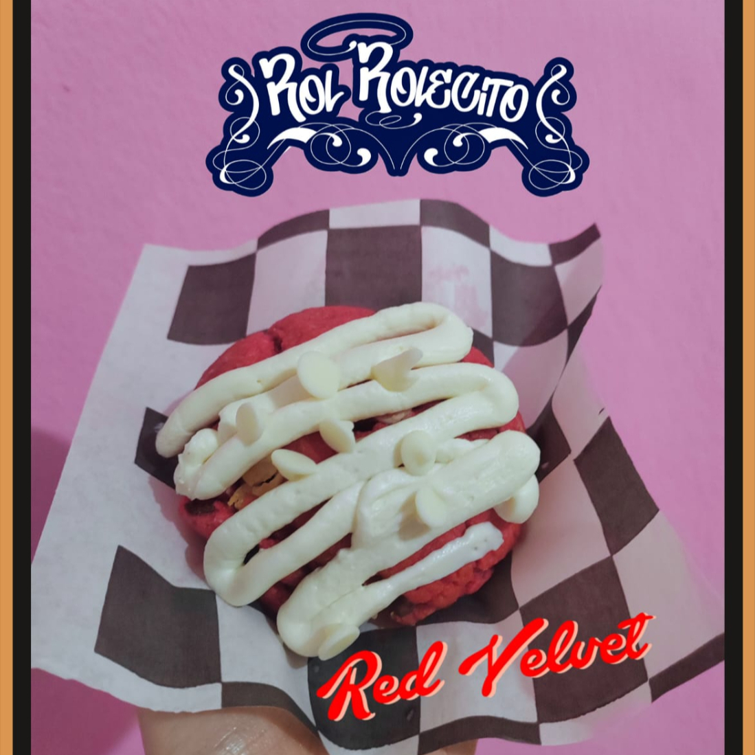 Galleta estilo New York sabor red velvet con textura suave y toque de cacao, intensa y deliciosa.