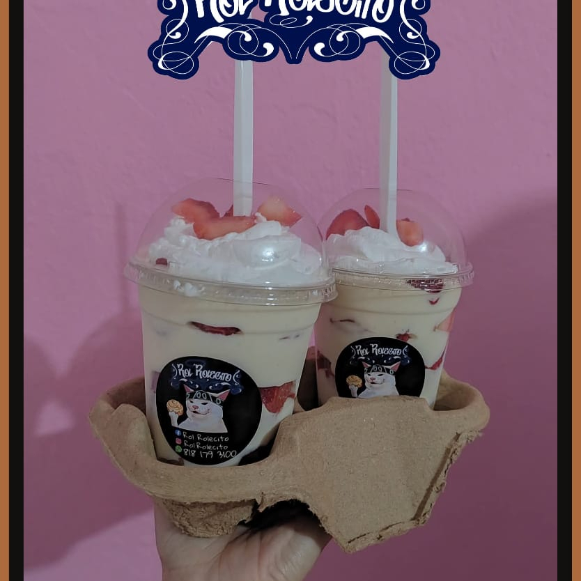 Vaso de 14oz de fresas con crema