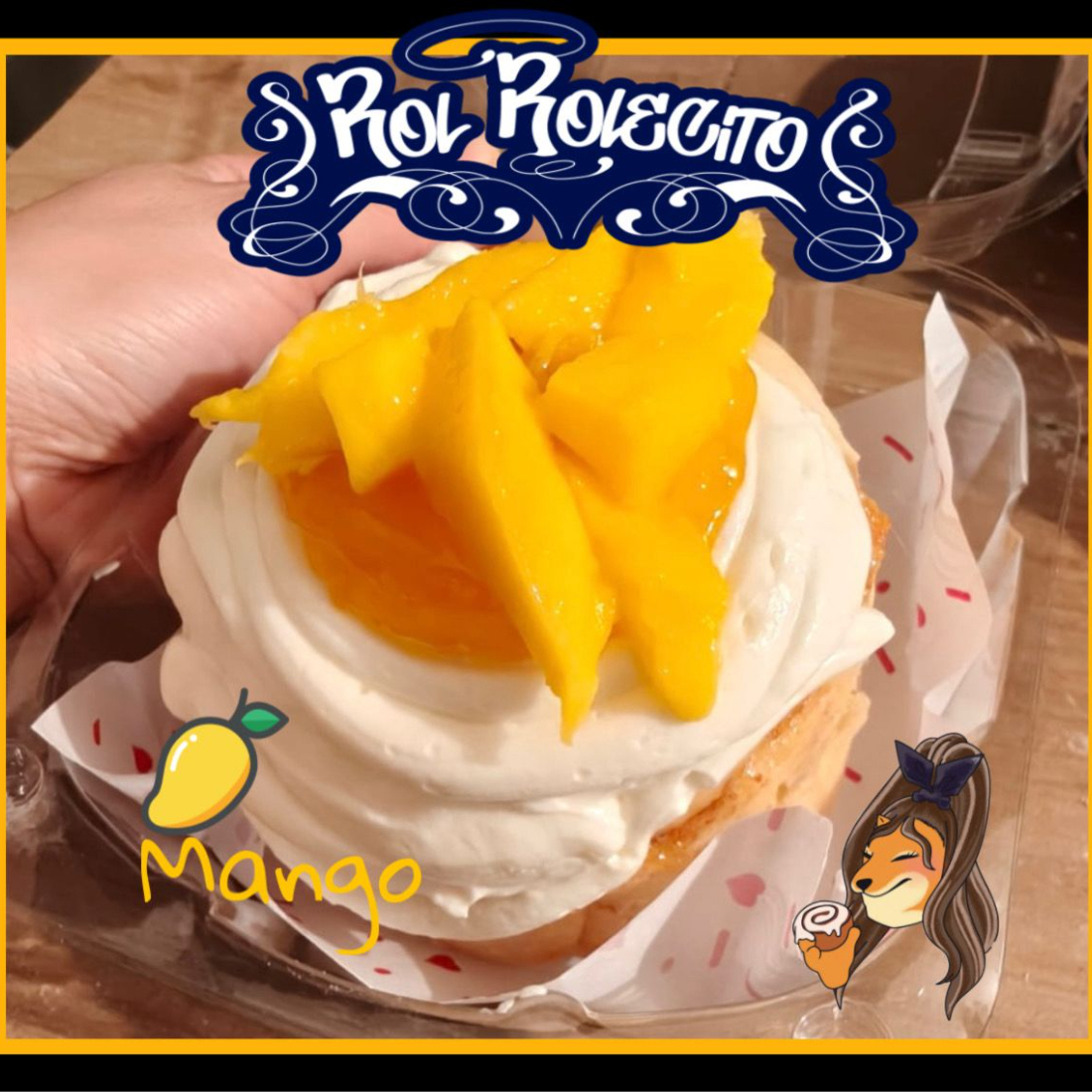 Exquisito rol de canela con cobertura de nuestro delicioso betún de queso crema sabor mango natural y fruta fresca, algo tropical, ideal para quienes buscan un sabor diferente y vibrante.