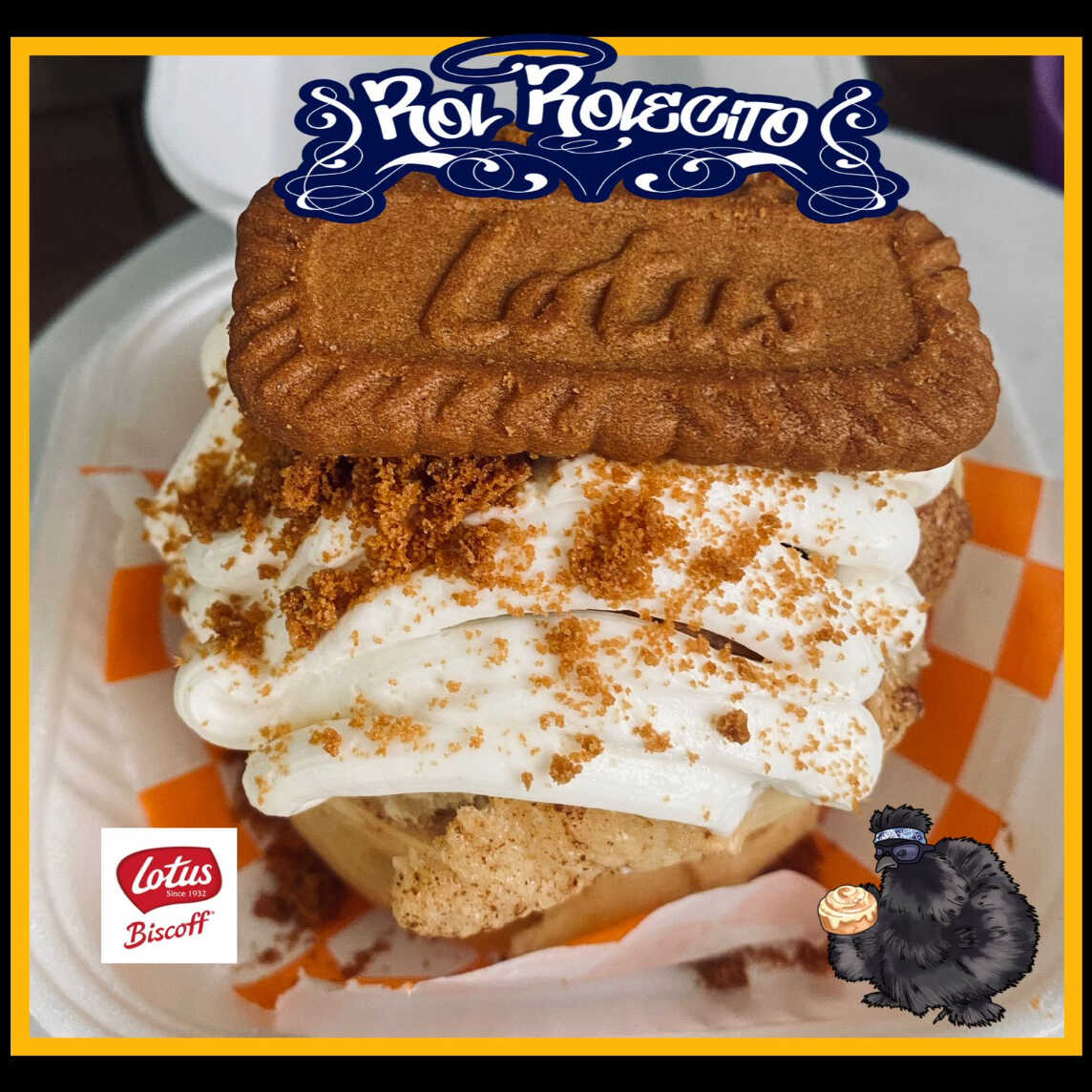 Rol de canela especial relleno de galletas Lotus biscoff, sabor especiado y caramelizado, cubierto con nuestro delicioso betún de queso crema y mas galleta.