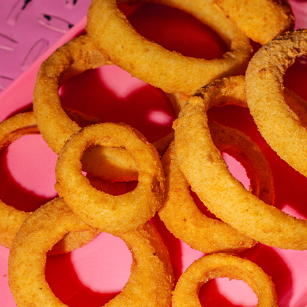 Aros de cebolla empanizados acompañados de aderezo chipotle.