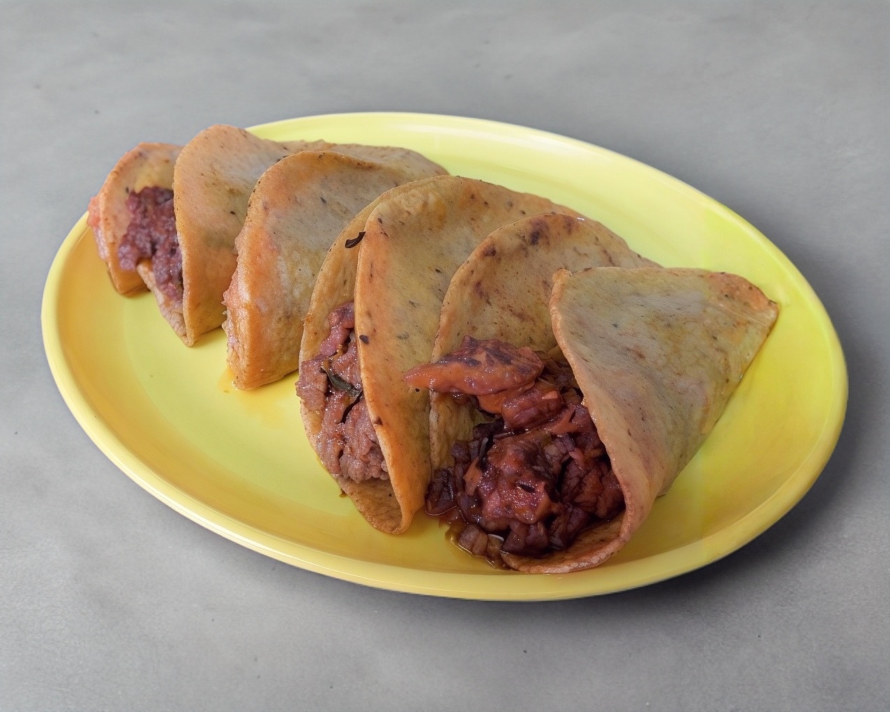 Orden de 5 Tacos al Vapor de los guisos a elegir entre: Frijol, Papa, Picadillo, Morcon, Desebrada, Chicharron, Cabeza de Puerco, Nopal con Huevo y Papa con Huevo acompañados de repollo y 3 tipos de salsa a elegir.
