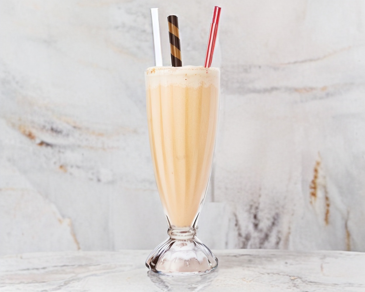 Deliciosa y cremosa malteada de nieve de vainilla con crema batida.