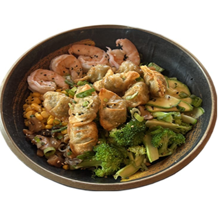 BASE DEL RAMEN CON 4 DUMPLING Y 6 CAMARONES