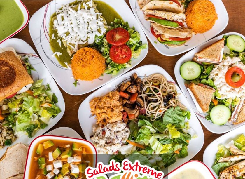 Combinadode 4 ensaladas su eleccion, acompañado con lechuga mixta galletas saladas, chiles y aderezo