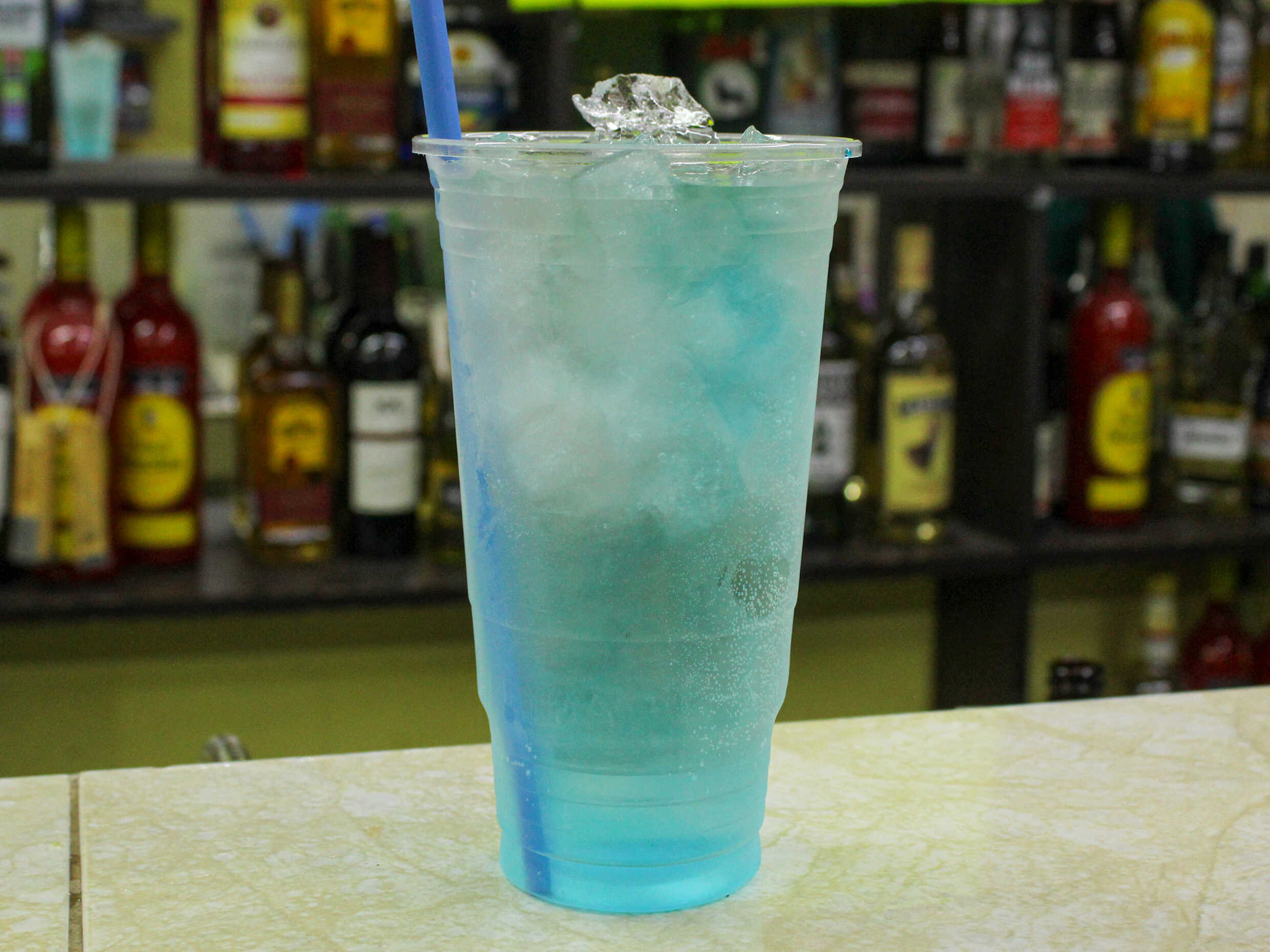 Ron blanco, jugo de piña, crema de coco, curacao