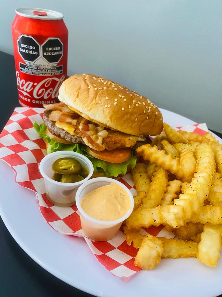 Hamburguesa, papas y refresco.