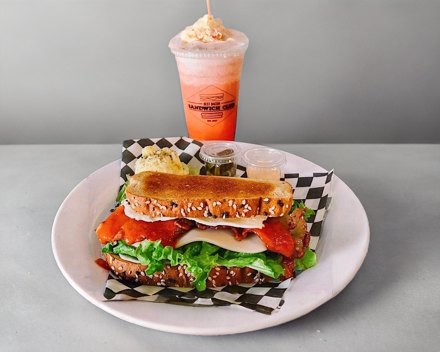 Jamón de pavo, queso mozzarella,tocino, mayonesa y mostaza.