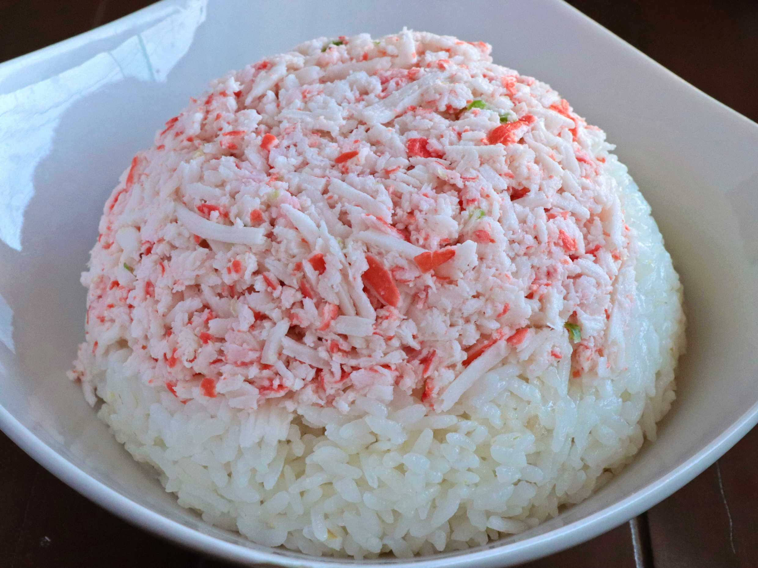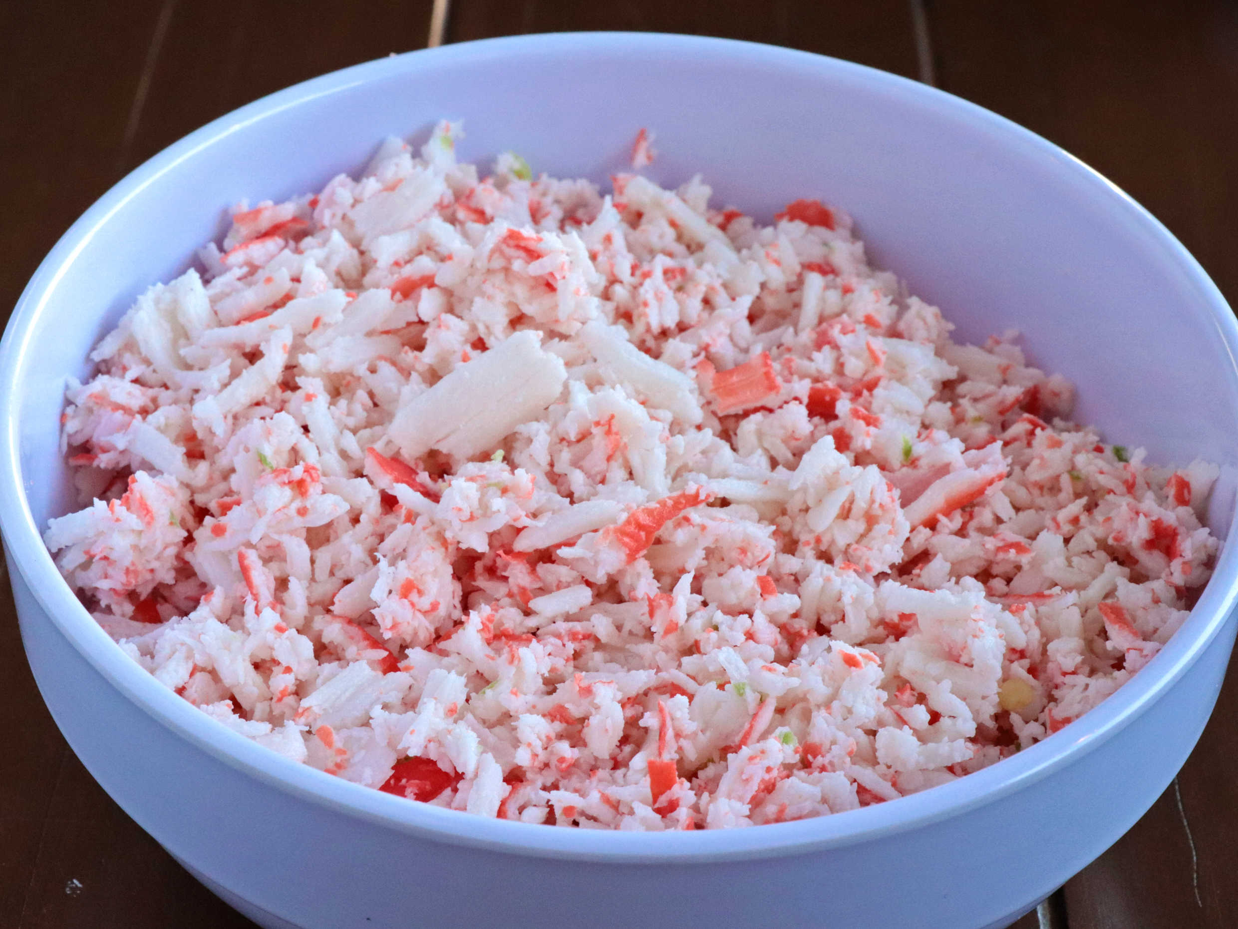 Surimi procesado mezclado con mayonesa y chile serrano.